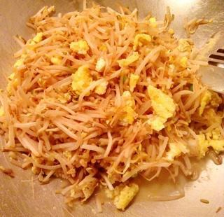 用料 豆芽;鸡蛋;小葱;大蒜;盐;糖 做法 豆芽放水中淘洗三遍。我这个是在中国超市买的豆芽,放很久了不太新鲜,所以颜色发黄。 葱和蒜切成末备用。 打鸡蛋进入碗中,加一小勺盐和半小勺糖。 用筷子或打蛋器将鸡蛋打散。 先热锅,锅烧热以后再倒油。趁油还没有很烫的时候将鸡蛋糊倒入锅中。等鸡蛋将近凝固以后用炒勺把鸡蛋划分成一小块一小块的。 然后将鸡蛋盛出放碗中待用。 如果此时锅中油不够了可以再加点油。然后将豆芽和蒜末倒入锅中翻炒。 等豆芽炒的略为透明以后放入小葱末和之前炒好的鸡蛋。最后加入一些盐和糖调味即可。 清炒豆芽