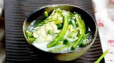 材料:丝瓜250克,虾米50克,鸡蛋2只,鸡精清汤块1块,葱花、盐适量。 做法: 1.将丝瓜刮去外皮,切成菱形块;鸡蛋加盐打匀;虾米用温水泡软。 2.炒锅上火,将油烧热,倒入鸡蛋液,摊成两面金黄的鸡蛋饼,用铲切成小块,铲出待用。 3.锅中放油再烧热,下葱花炒香,放入丝瓜炒软,加入适量开水、鸡精清汤块、虾米烧沸,煮约5分钟,下鸡蛋再煮3分钟,这时汤汁变白,调好咸淡即可出锅。我的QQ是122982505喜欢护肤,养生,喜欢情感日志,美食 护肤 ,化妆技巧,教育孩子相关知识的朋友可以加一下 16.黄花蛋汤