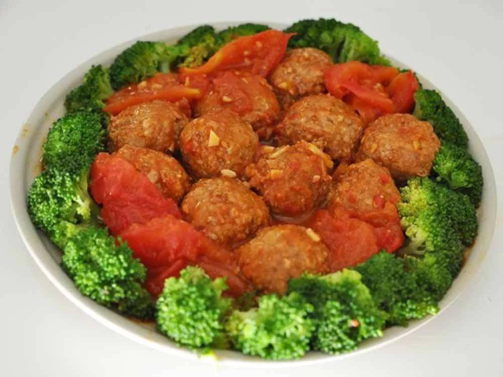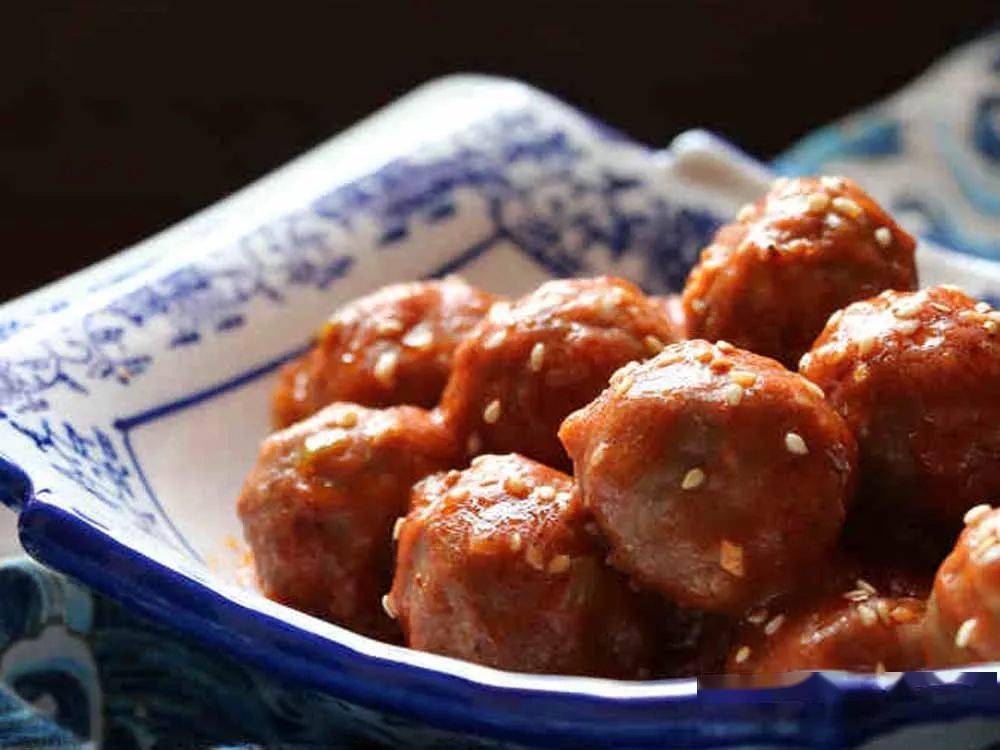 1、在牛肉馅中调入适量姜末、料酒、盐、生抽、糖、白胡椒和油,搅拌均匀静置10分钟; 2、把腌制好的肉馅捏成丸子放入油锅中小火炸熟,时间视丸子大小而定,大约需要5分钟。捞出沥油; 3、番茄切块,洋葱切丝。锅中放少量油,先下洋葱炒一分钟再下番茄继续煸炒1分钟,加入炸好的丸子、适量番茄酱、盐和没过丸子三分之二的水,大火收汁,起锅前加少量水淀粉勾芡即可; 4、西兰花煮熟供摆盘使用。 八、韩式辣牛肉丸的做法 ▼
