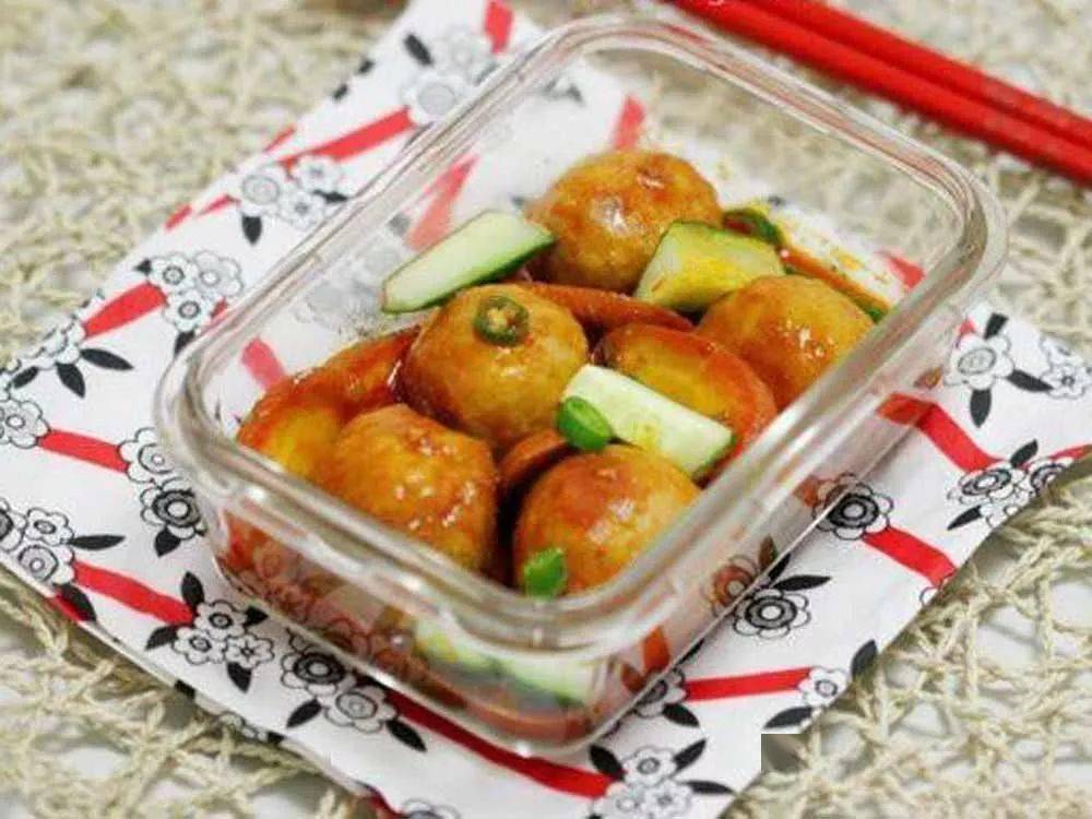 1、牛肉丸切片。烤箱200度,上下火预热; 2、用牙签把切好的牛肉丸片串起来,抹上沙茶酱; 3、烤盘铺上锡纸,把牛肉丸串放进烤盘摆放整齐,放进烤箱烤十分钟,就完成啦。 十、蒸白萝卜牛肉丸的做法 ▼