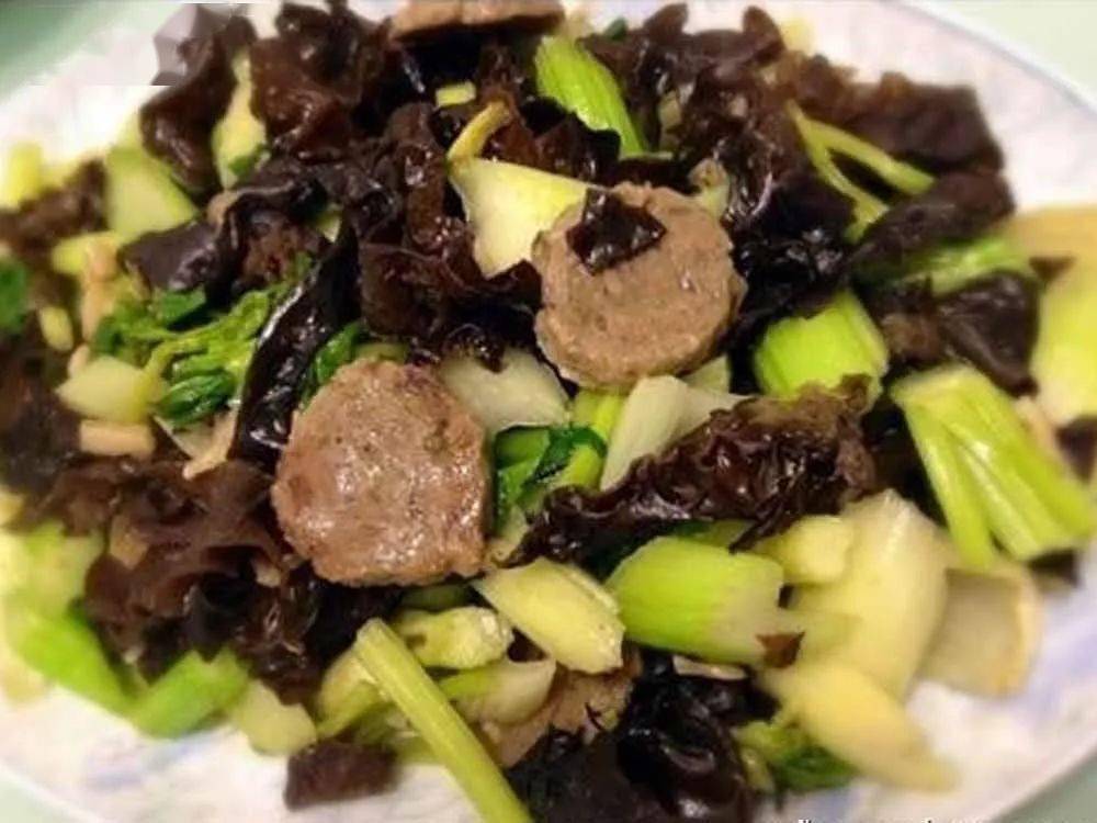 1、白萝卜去头尾,去外皮,切成段; 2、用勺子在白萝卜中间挖一个洞,能放下牛肉丸即可; 3、将白萝卜放入锅内加盖大火上汽后转小火隔水蒸7分钟; 4、将牛肉丸冲洗后放入白萝卜洞中隔水蒸20分钟。 十一、芹菜木耳炒牛肉丸的做法 ▼