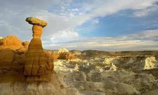 由于风蚀作用,因此超15米、重14吨的平衡石仅站在1.43米的底座上,看起来十分危险。 2.Ah-Shi-Sle-Pah Wilderness 蘑菇石柱
