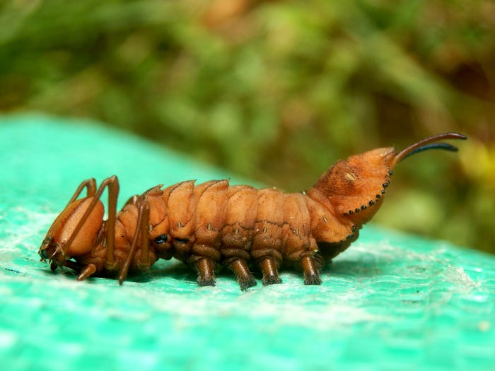 龙虾蛾毛虫 龙虾蛾毛虫通过射击甲酸来捍卫自己。这种令人毛骨悚然的样子似乎很危险。