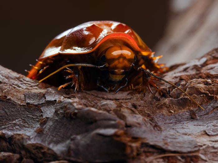 犀牛蟑螂 犀牛蟑螂,也称为巨型穴居蟑螂,原产于澳大利亚。巨型穴居蟑螂可以生活10年,由于它们大多在地下挖洞,因此它们没有像许多其他种类的蟑螂一样具有翅膀。