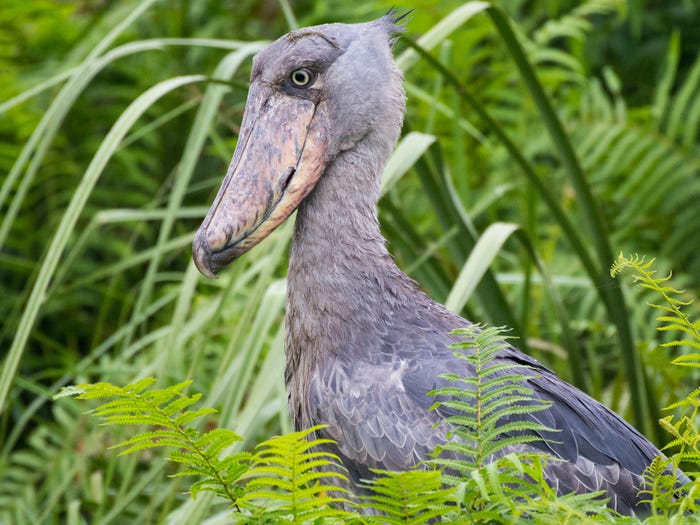 犀鸟鹳 犀鸟鹳是极度濒危的物种,犀鸟也被称为鲸头鹳,生活在非洲的沼泽中,看上去就像是一部奇幻小说中的生物。这些大鸟已经存在了几个世纪。世界上只剩下约5,000只shoe嘴鹳,使它们成为极度濒危的物种。