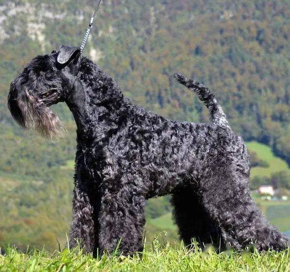 26.凯利蓝梗 不是雪纳瑞哦。他的皮毛是蓝蓝的诶。比较好斗,因为最早是用来做斗犬的,而且性格也很顽固。但它是很好的看家狗狗。