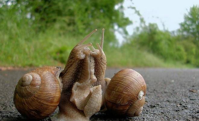 有些动物是雌雄同体的,意味着它们既可以是雄性也可以是雌性,可攻可受,不男不女,比如蜗牛、蚯蚓。虽然同样是雌雄同体的动物,但它们繁殖的方式却也不相同。 蚯蚓 两只蚯蚓事先商量好,既要当爹也要当妈,它们采用“69”的交配方式,在把精子传输到对方体内的同时,也欣然接受对方的精子,互惠互利,公平公正。