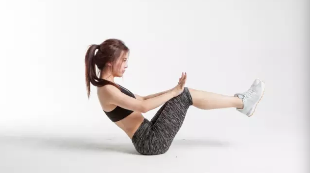 2. 激活疲软肌肉 V字支撑对抗 3 组,每组力竭 激活腹直肌、腹横肌力量。挺直腰背,双手用力推膝盖,膝盖用力上提和双手对抗。