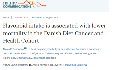 这篇名为《丹麦饮食癌症与健康队列研究中黄酮类化合物的摄入与较低的死亡率有关》(Flavonoid intake is associated with lower mortality in the Danish Diet Cancer and Health Cohort)的论文今天发表在《自然通讯》杂志上。 该研究是伊迪斯科文大学与Herlev & Gentofte大学医院、奥尔胡斯大学、丹麦癌症协会研究中心、奥尔堡大学医院、西澳大利亚大学和国际癌症研究机构的研究人员合作进行的。