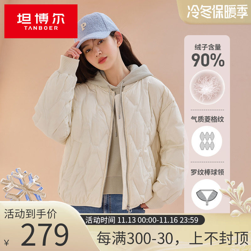 【在售价】35.00 元 点击进入:点击立即下单 坦博尔菱格羽绒服女短款2022年新款轻薄时尚潮流秋冬保暖棒球外套