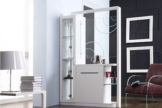 收纳柜——利用大小不一的柜子对客厅空间进行有效的分隔,而且这些收纳柜的位置是可以改变的,那么客厅的布置也能常常发生变化,从而增加了住宅室内空间的多变性。