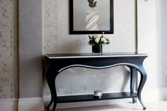作为一种家具隔断,小型的装饰桌非常适合放在玄关,桌面不宽,并且能倚墙而立。在装饰桌上挂几幅装饰画,再配上一对装饰用的台灯和植物,就可以界定出玄关的空间,成为玄关和客厅之间的隐形隔断。