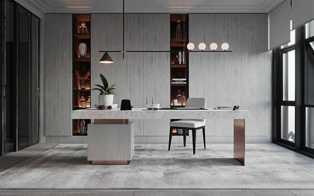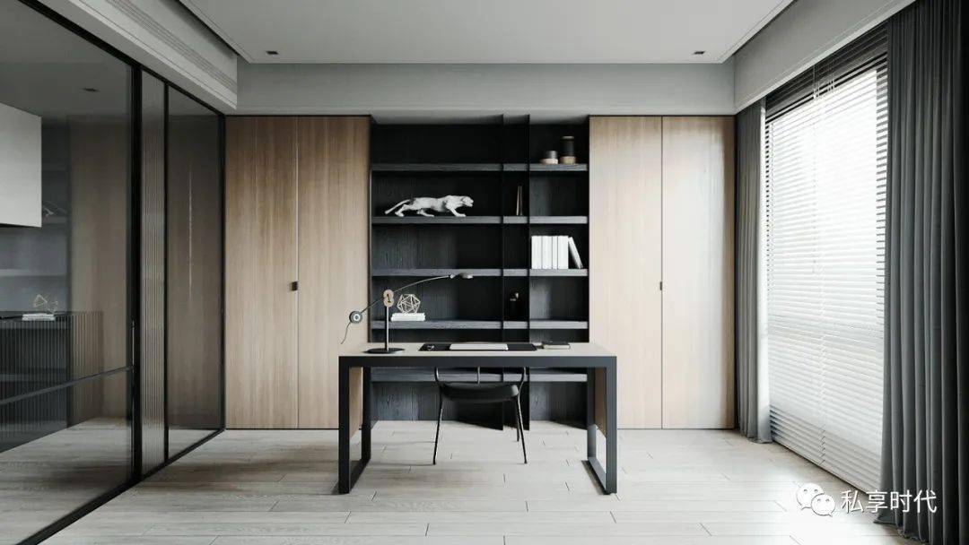 书房的设计是以方便阅读、书写,满足房间功能需求。书房归属于工作区域,书房的合理布置则有利于建立良好的习作氛围和环境,改善心情,利于学习思考,运筹帷幄,提高效率。