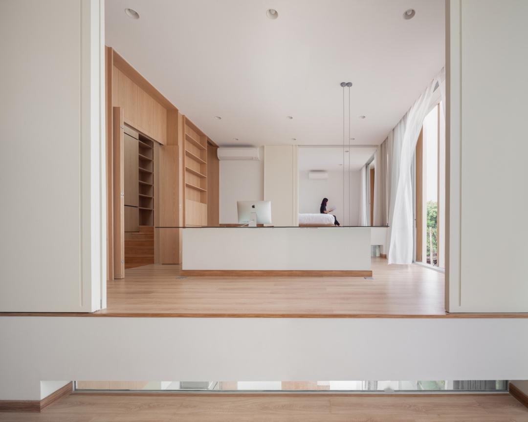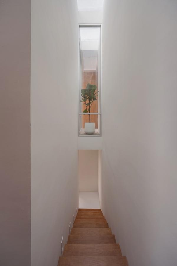 从这个角度我们可以看到,一层主要是玄关,二层主要是客厅,三层是厨房和餐厅,四层是卧室,这样可以适当地保证了每个空间的私密性。