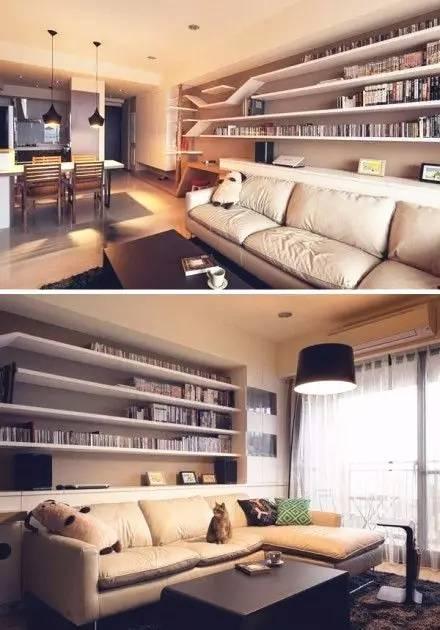 (图片来源于网络) ▲ 沙发背景墙收纳,隔板设计更简约,收纳量更大,作为书架收纳更是满分~