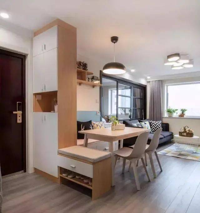 增加采光:采光可以让小户型看起来更加明亮、宽敞。可以通过增加窗户面积、选择透明或半透明隔断等方式来增强室内采光。尽量用玻璃墙或者半透明玻璃来代替实墙。 增加收纳:小户型空间有限,需要注重收纳功能的设计。可以在墙壁上安装置物架、在床底设置储物柜等方式,有效地利用空间,同时保持室内整洁。