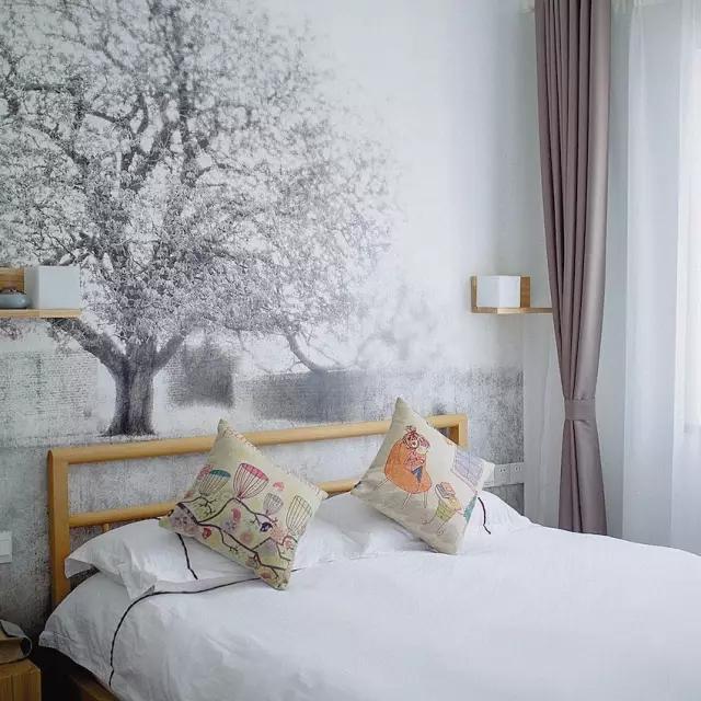 据说民宿的设计总监酷爱中国古典诗词,将诗经、唐诗刻写在房间的墙壁上,并各从中国传统颜色中选取一色作为房间的主体色。 每个房间拥有自己取自《诗经》的主题,独具匠心,并在传统色彩和诗词的串联下形成“异曲同工”之妙。
