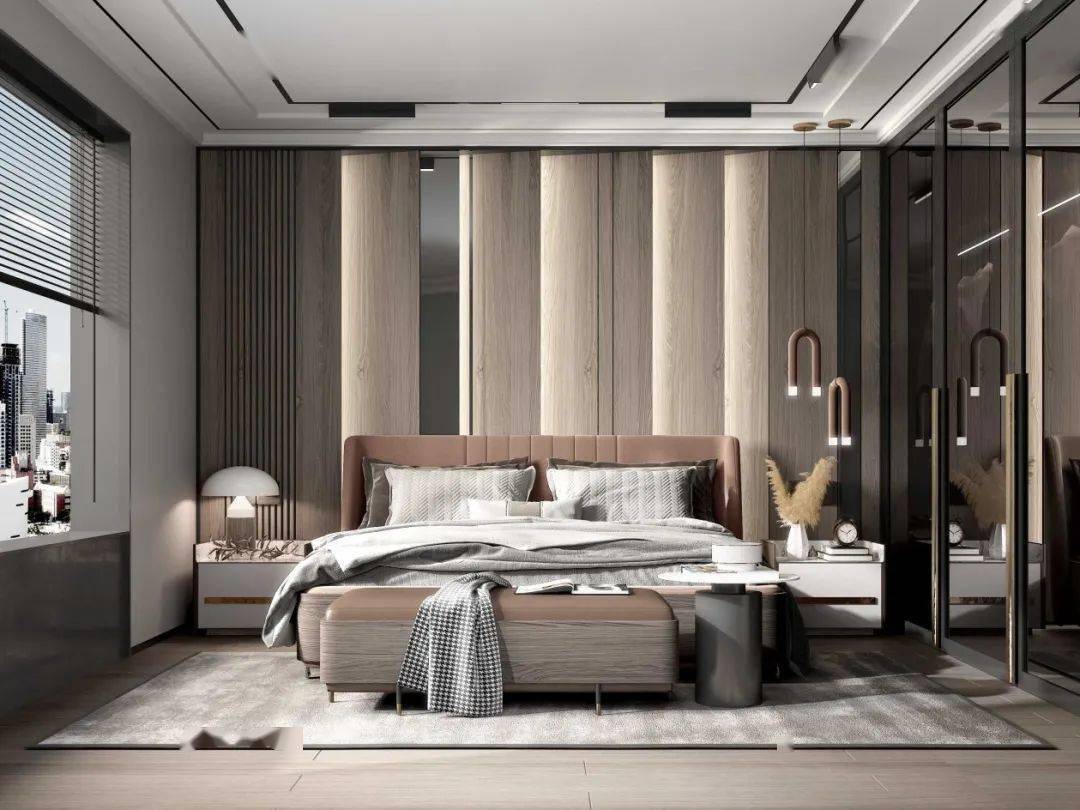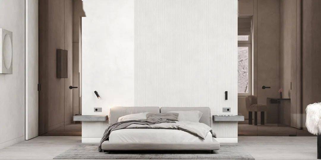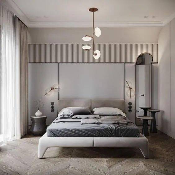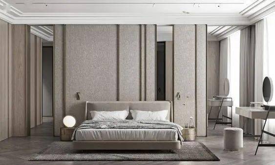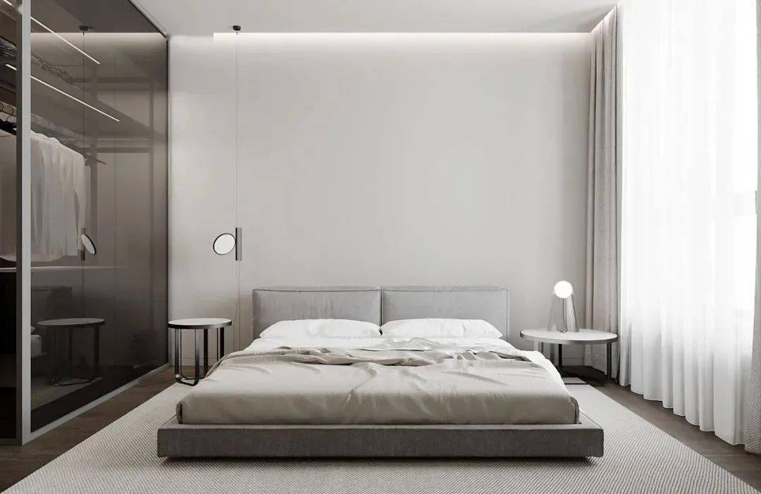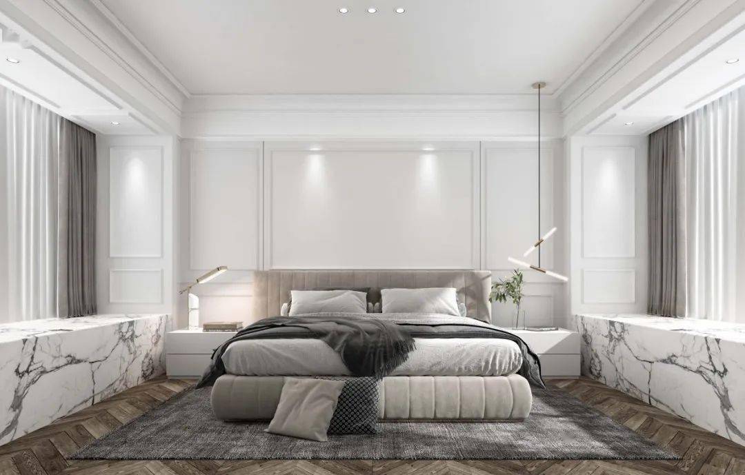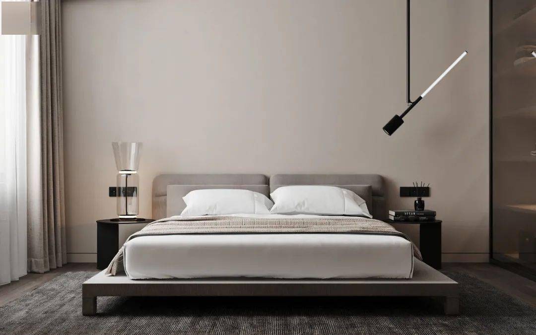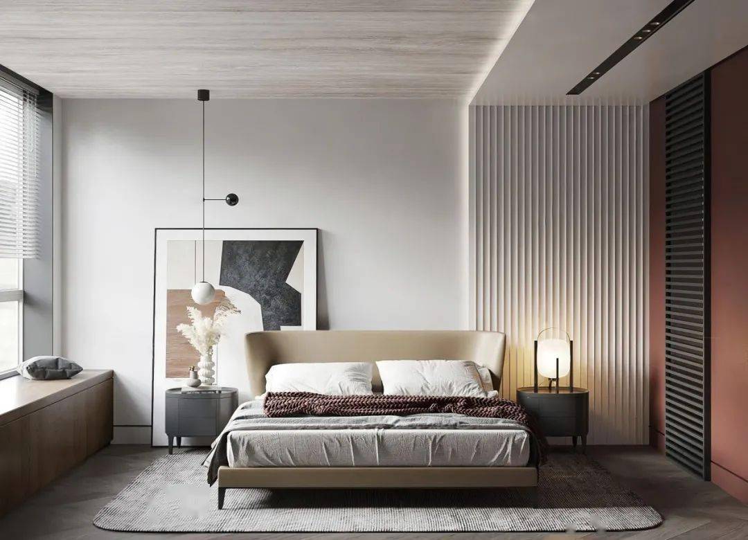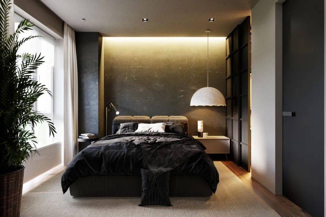 高级灰的设计元素在现代风卧室中尤为适用,以灰色和白色为主基调的卧室空间,再点缀以黑色家具,不仅营造出轻松舒适的氛围,更增添了一抹低调的奢华感。