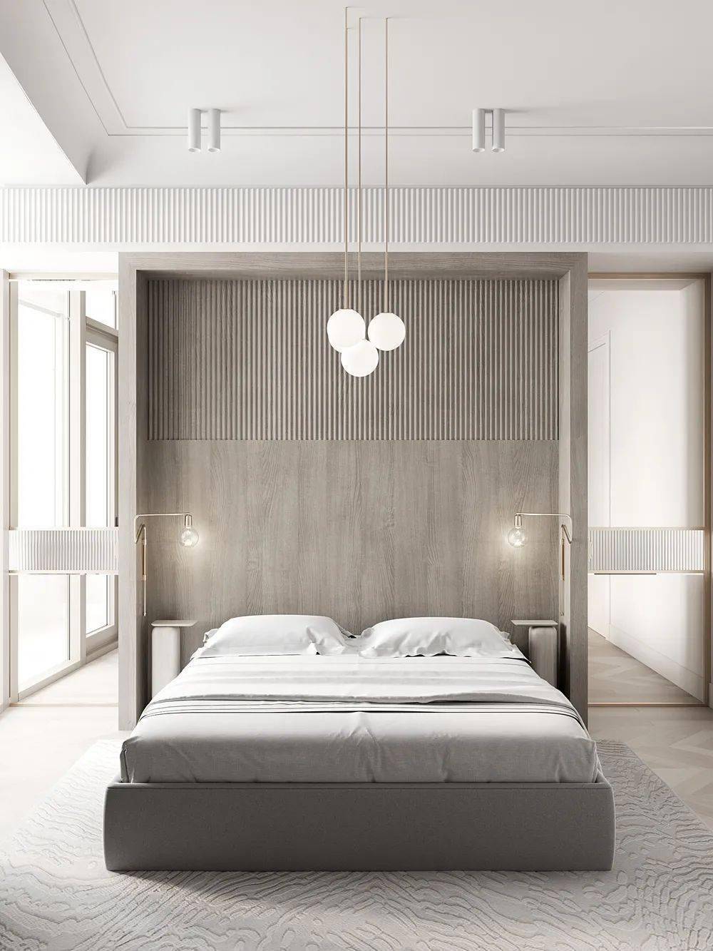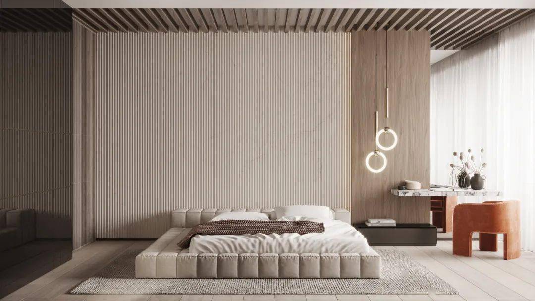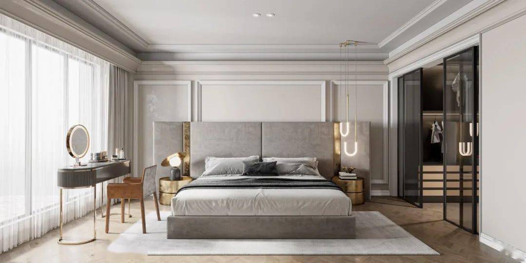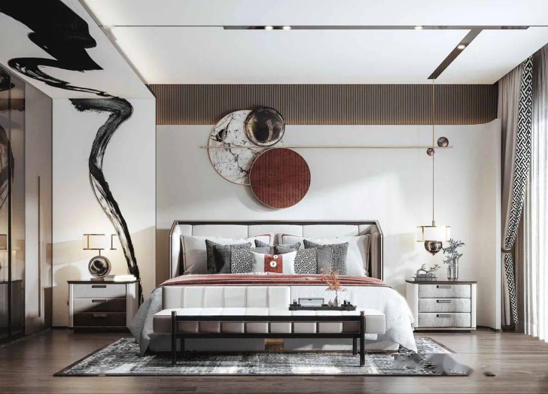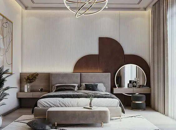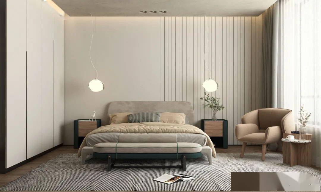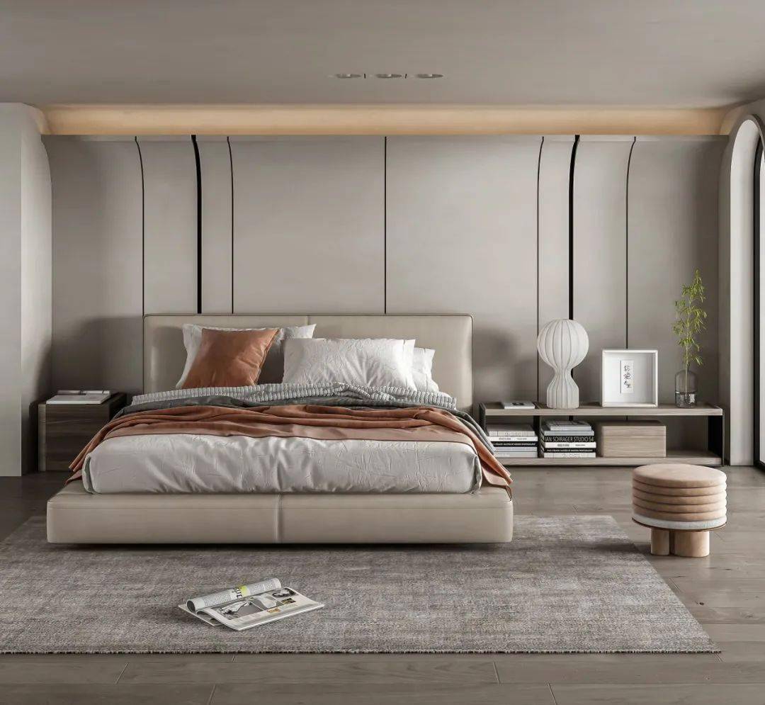 高级灰的设计元素在现代风卧室中尤为适用,以灰色和白色为主基调的卧室空间,再点缀以黑色家具,不仅营造出轻松舒适的氛围,更增添了一抹低调的奢华感。