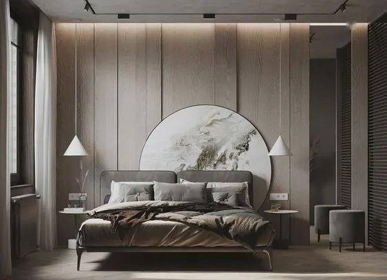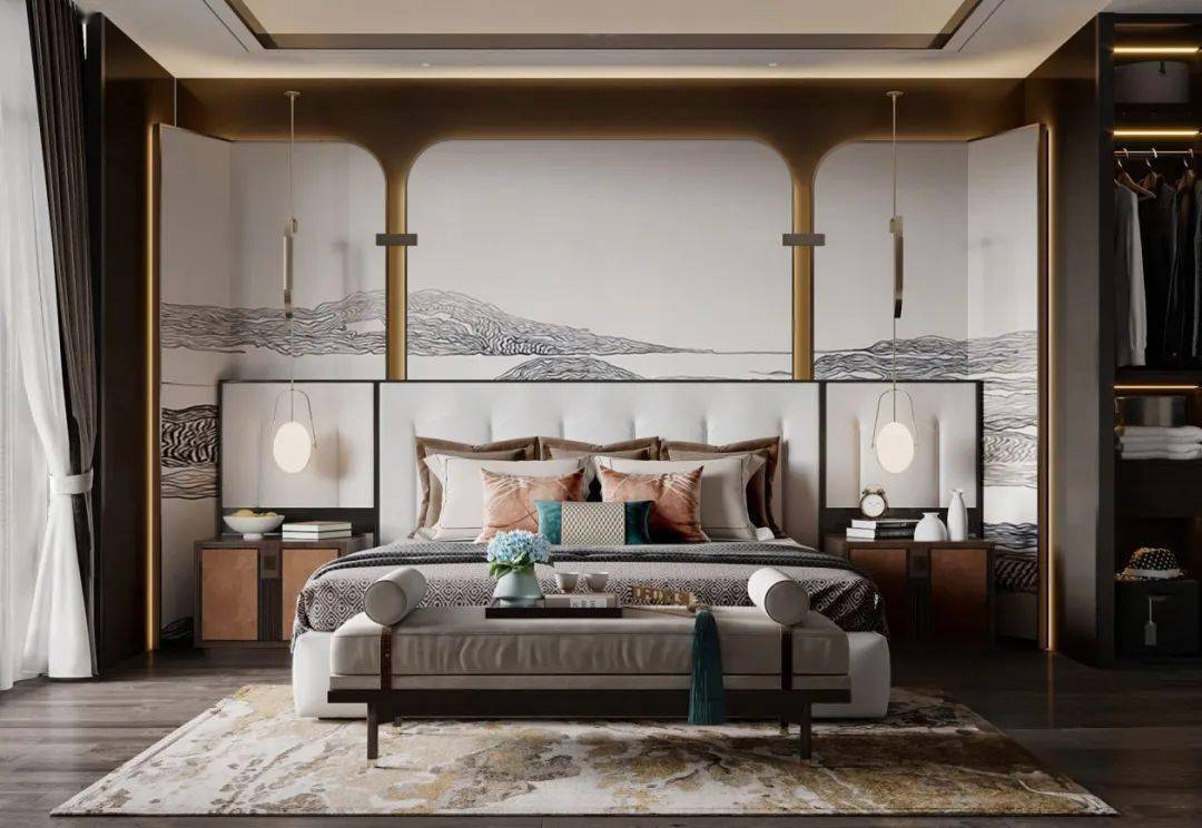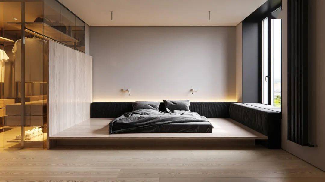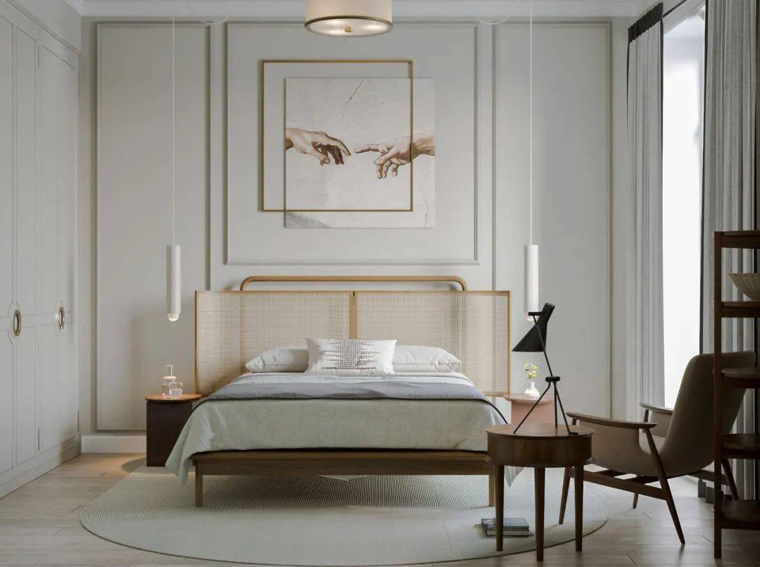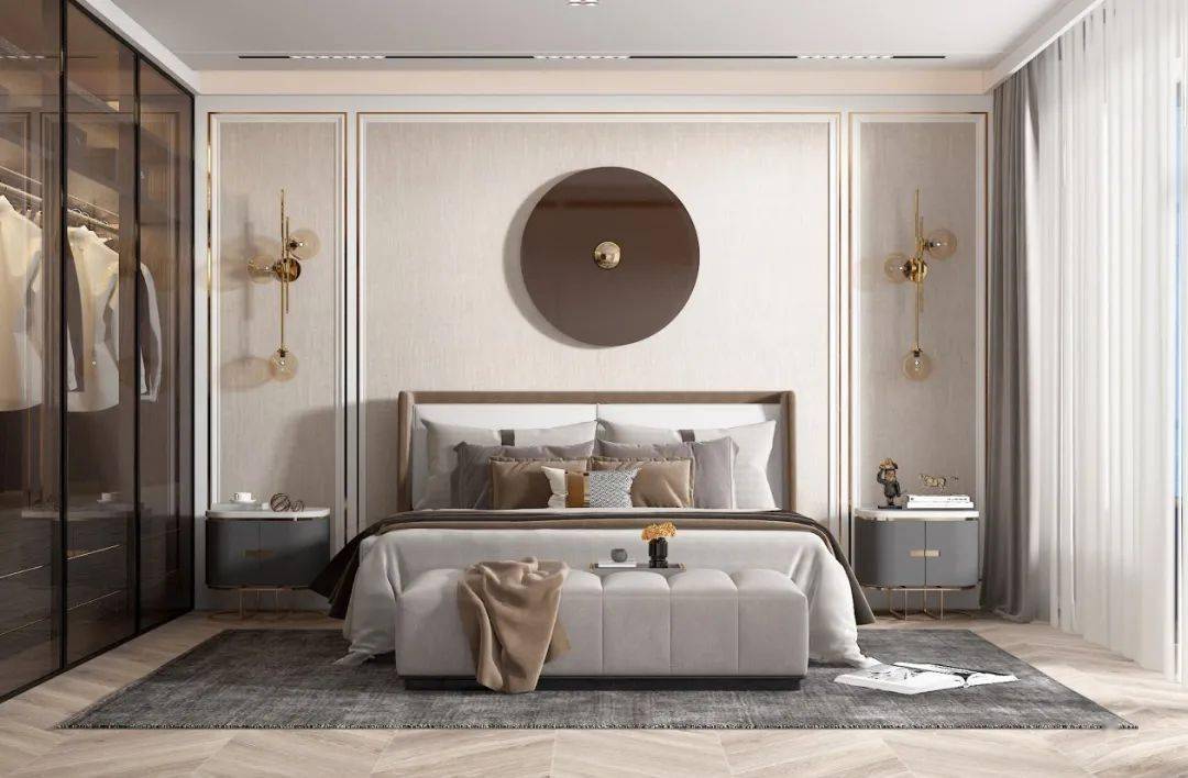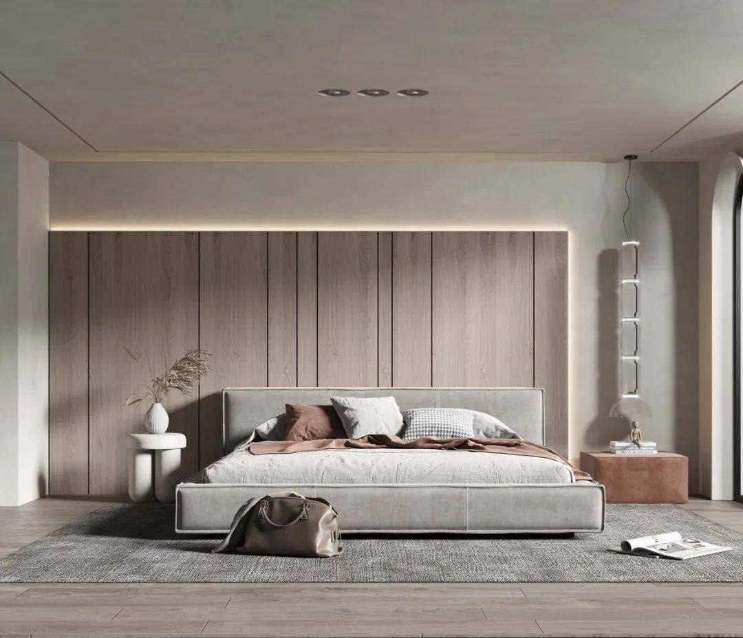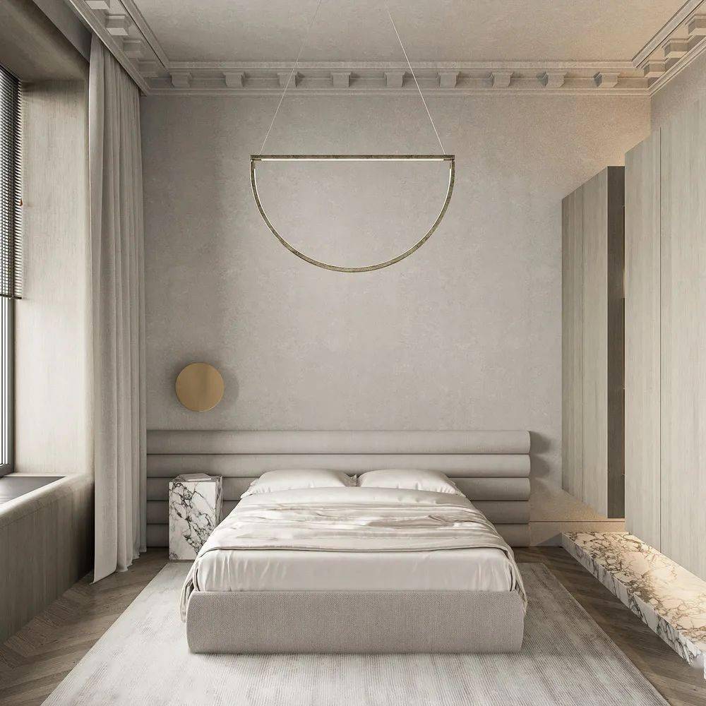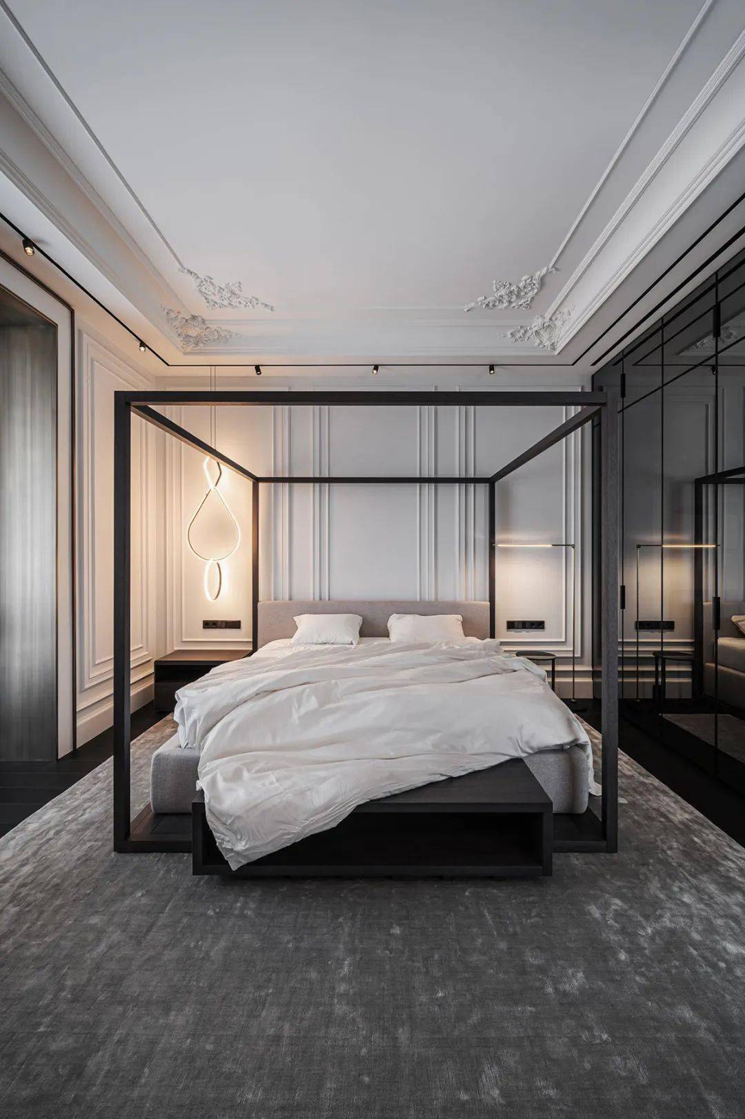 高级灰的设计元素在现代风卧室中尤为适用,以灰色和白色为主基调的卧室空间,再点缀以黑色家具,不仅营造出轻松舒适的氛围,更增添了一抹低调的奢华感。