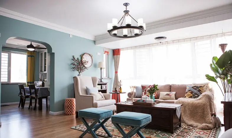 2、墙面基层处理(刮腻子)(1-2天) 简单来说,就是在刷漆之前对墙面进行清洁找平的工作,没有清洁过的墙面是坑坑洼洼的,很不好看。 如果墙面还是水泥墙面,这一步就是刮腻子,把坑坑洼洼的地方补起来,把前面弄光滑,增加外漆或墙布的附着力。 3、墙面涂料处理(3-5天) 墙面基层处理好后,用乳胶漆在最外层涂刷面漆涂料,或者用壁布进行铺贴。 注意事项: ①刷有色漆需要先小面积试色 设计师和业主必须现场确认有色墙漆的颜色,因为墙漆实际上墙后,颜色会受光线和墙漆厚度的影响,与色卡有一定的差距。 最好先小面积涂刷试色,颜色不合适可以立马进行调,全部涂好就不比较麻烦了。