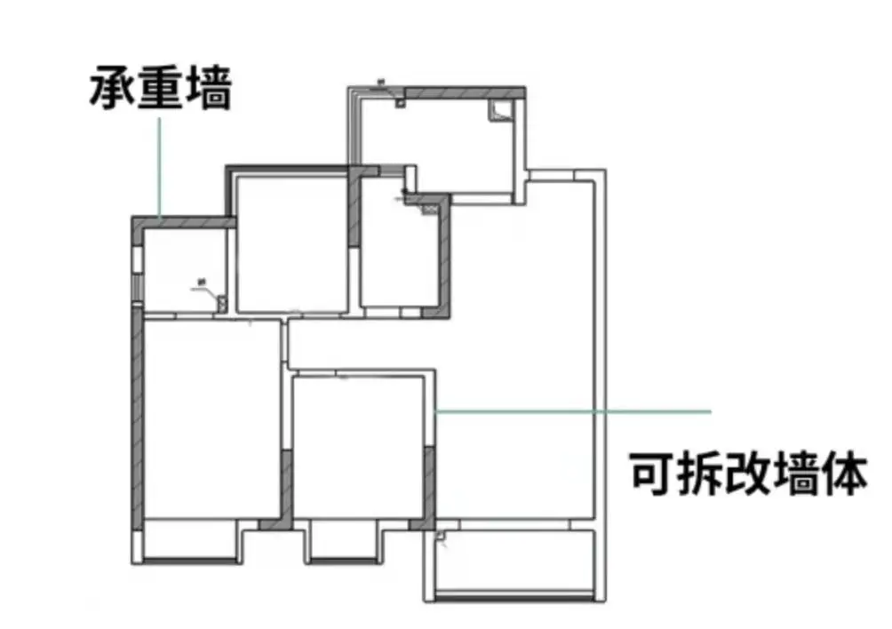在户型图上,承重墙标注线比别的墙又黑又粗~~ 3、新建墙体(2-5天) ①记得使用轻体砖,做完记得挂网。 ②砌墙最好不要一次砌到顶,中间最好间隔5-7天,等水泥砂浆彻底干透固定,再继续往上垒砌封堵,这样才能保证墙面的牢固性。 ③如果是有壁挂的柜体或者洗衣机,需要加固处理。 4、门窗拆改(1天) 不是必做项,可以和商家确定让他们包拆包安装,注意保护好房屋结构不被破坏,做好加固处理 。