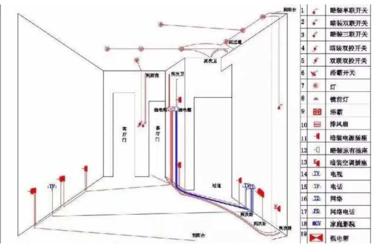 注意:水电施工图要保存好,记得问施工方要一份电路布置图,以后检修或在墙上钉钉子时,防止电线被打坏。