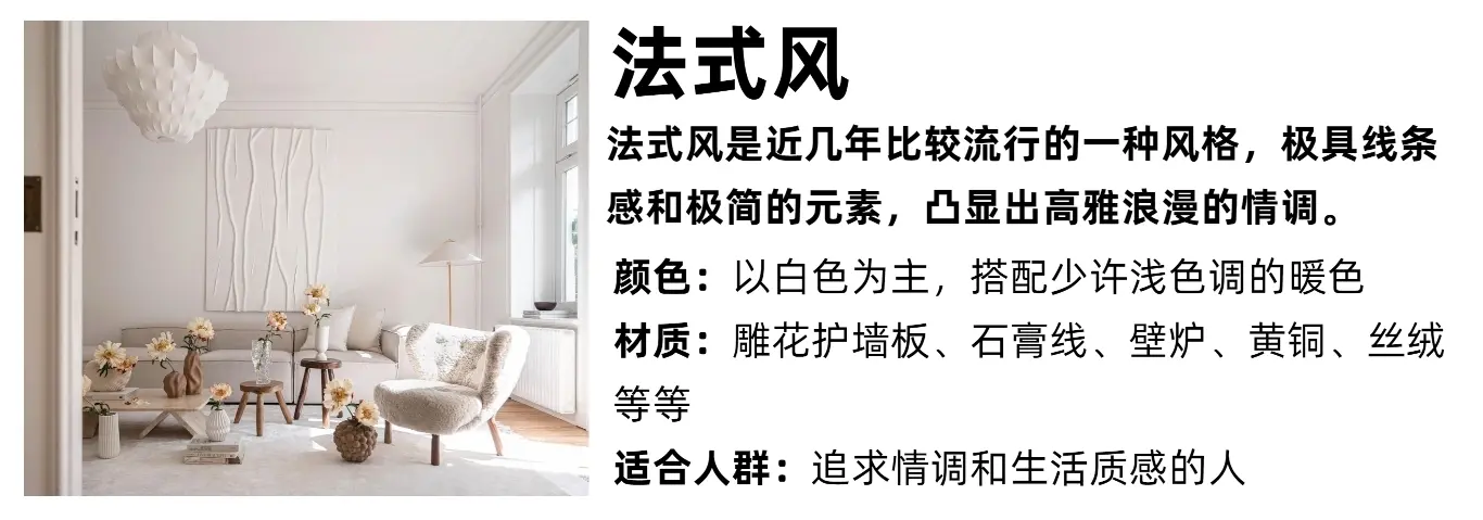 关于如何确定自家的装修风格: 正如那句话,时尚是个轮回,家庭装修经历了一个这样的风格循环,简→繁→简: 活在当下,不必过度追求啥永不过时的风格,自己喜欢就好。 老K总结了几种主流装修设计风格的特点和元素,看看哪些能入自己的眼,是自己的菜。