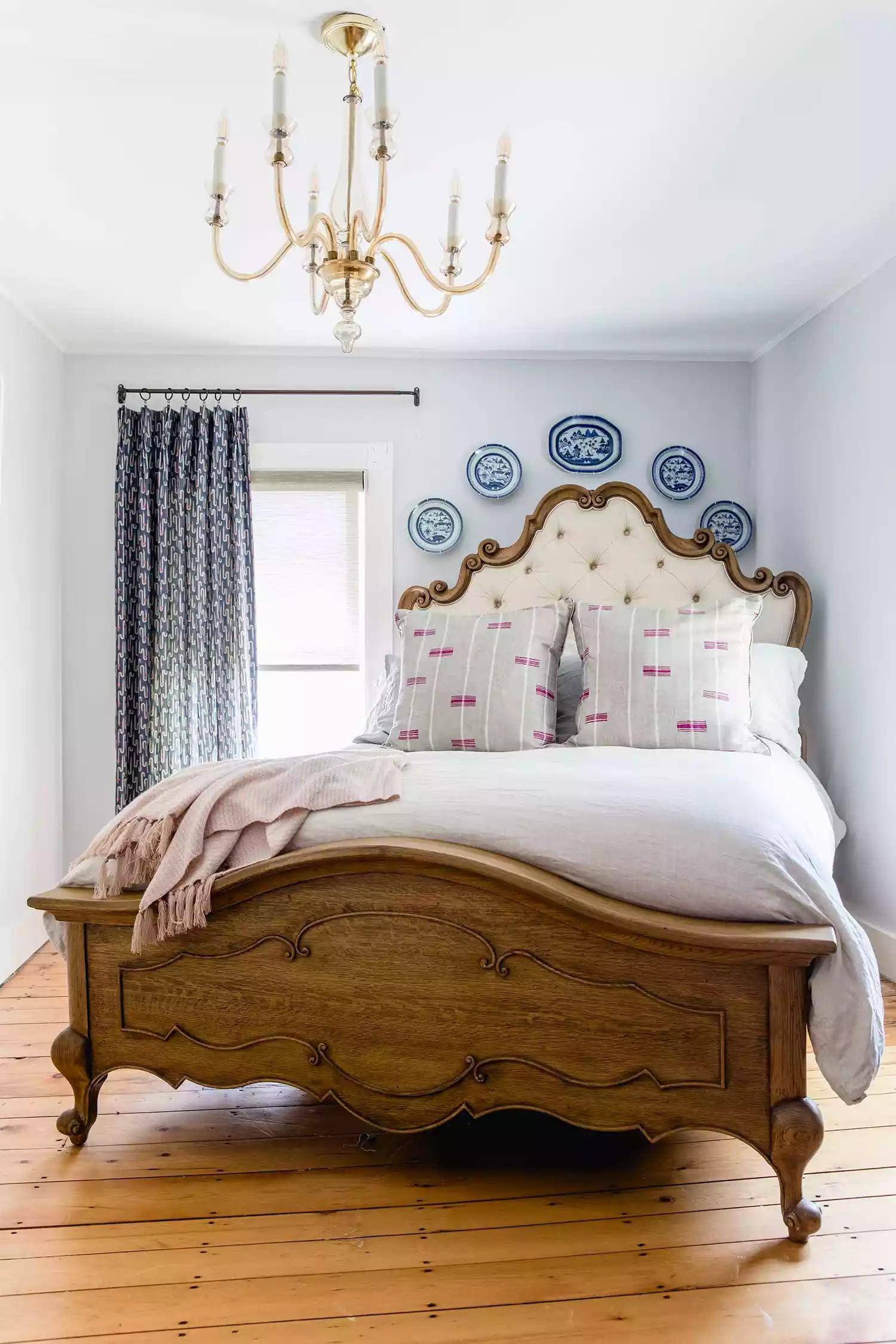 Via:THE GRIT AND POLISH 室内设计起源于英国工艺美术运动(The Arts & Crafts Movement),所以室内设计中的传统风格是指工艺美术运动之前的传统设计。打造传统风格的关键是购买真正的传统物品。坚固的木床配上简单的白色被子,如果你有足够的空间,也可以把一些古董家具带到你的卧室。 过渡风格(Transitional)