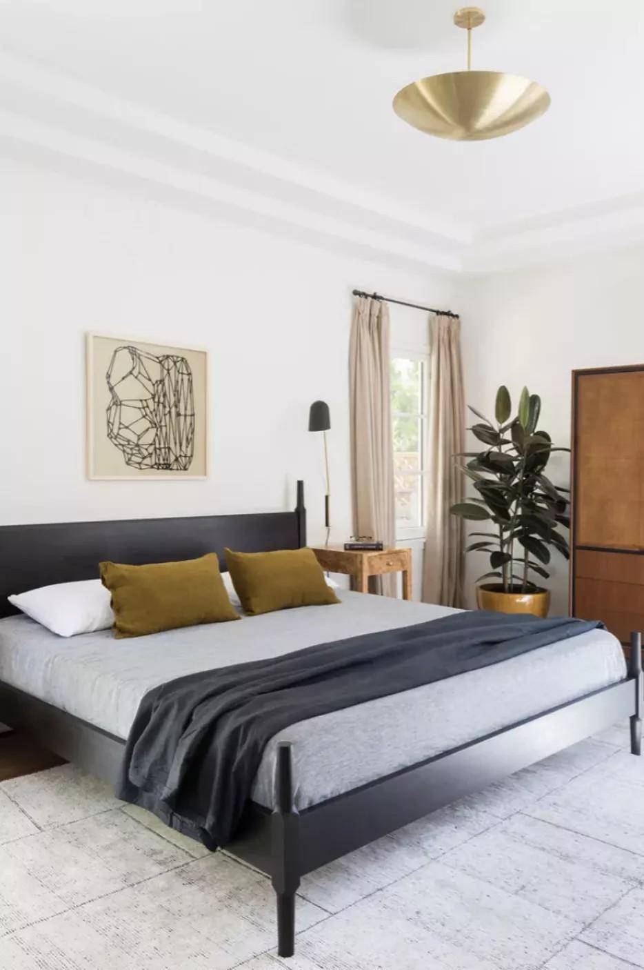 Via:BECCA INTERIORS 单色(Monochromatic)这个词描述的是一种色彩方案,而不是一种美学。但由于单色卧室是如此引人注目,所以在你装饰你的空间时,它们值得考虑。要做到这一点,只需选择一种颜色并坚持下去。记住,你可以通过探索该颜色的不同色调来增加对比。 极简主义(Minimalist)