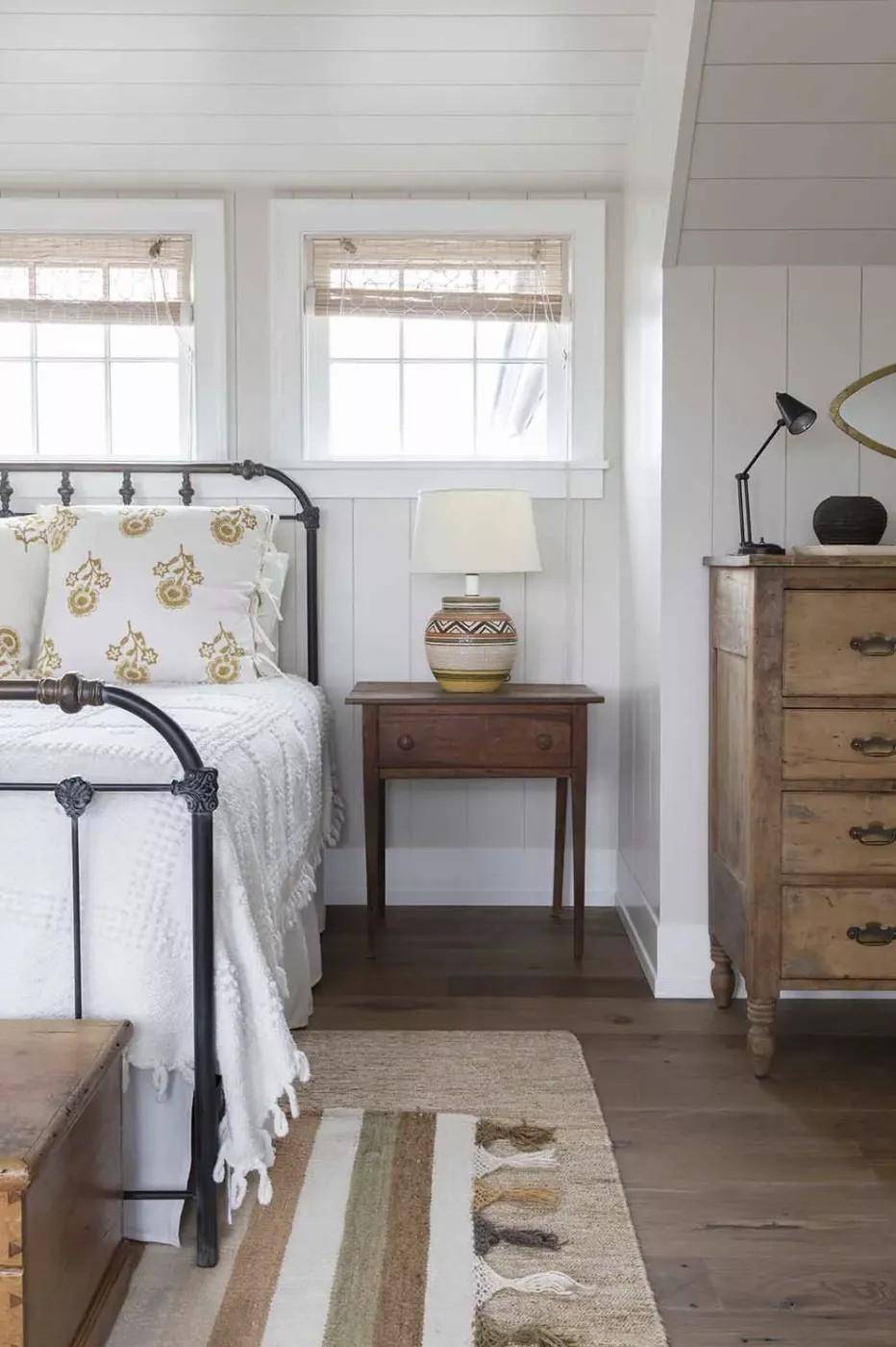 Via:MSTARR DESIGN 不能只在一种风格上定居?折衷主义的装饰可能正合你意。这种设计风格推崇混合和匹配的艺术,所以要搭配对比强烈的颜色,储存印花,并从不同时代的作品中挑选。这种方法肯定会让你的卧室看起来有活力,有质感,而且令人愉快。 农舍风格(Rustic)