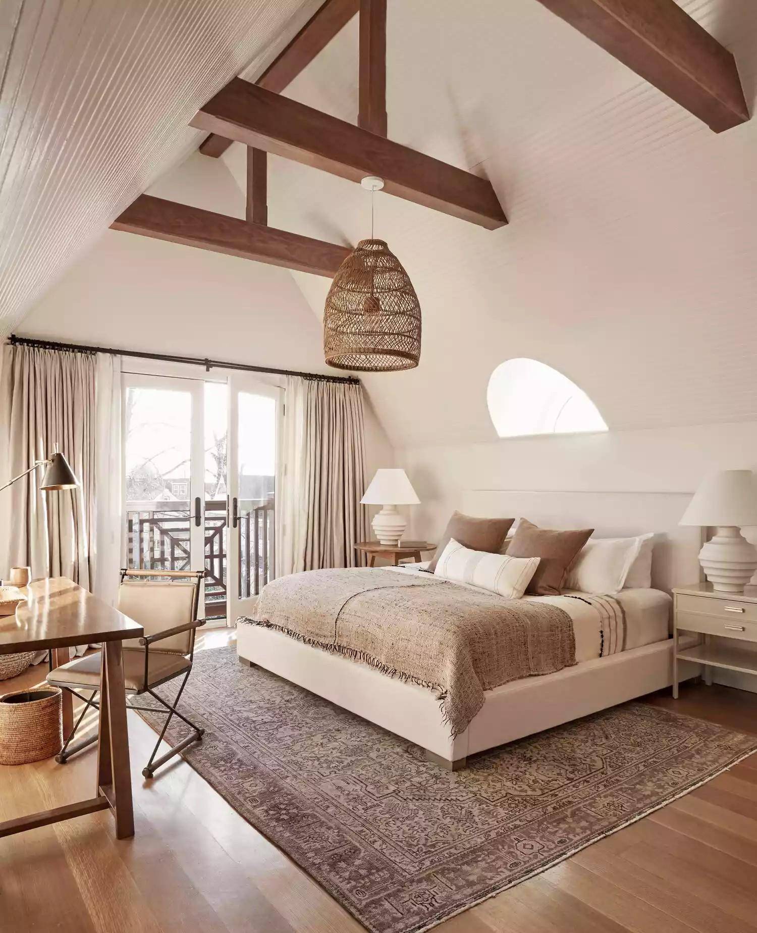 Via:TYLER KARU 渴望一个皇室的卧室?维多利亚时代可以满足你的要求。这一时期以其装饰性的设计方法而闻名,其中包括装饰性的造型、戏剧性的窗帘、印花墙纸和一大堆其他声明性的点缀。 由于维多利亚时期注重装饰,你可以悬挂一盏漂亮的吊灯,用华丽的镜子进行装饰,或者购买上图中经典的维多利亚式的床头板。 滑雪屋风格(Ski Lodge)
