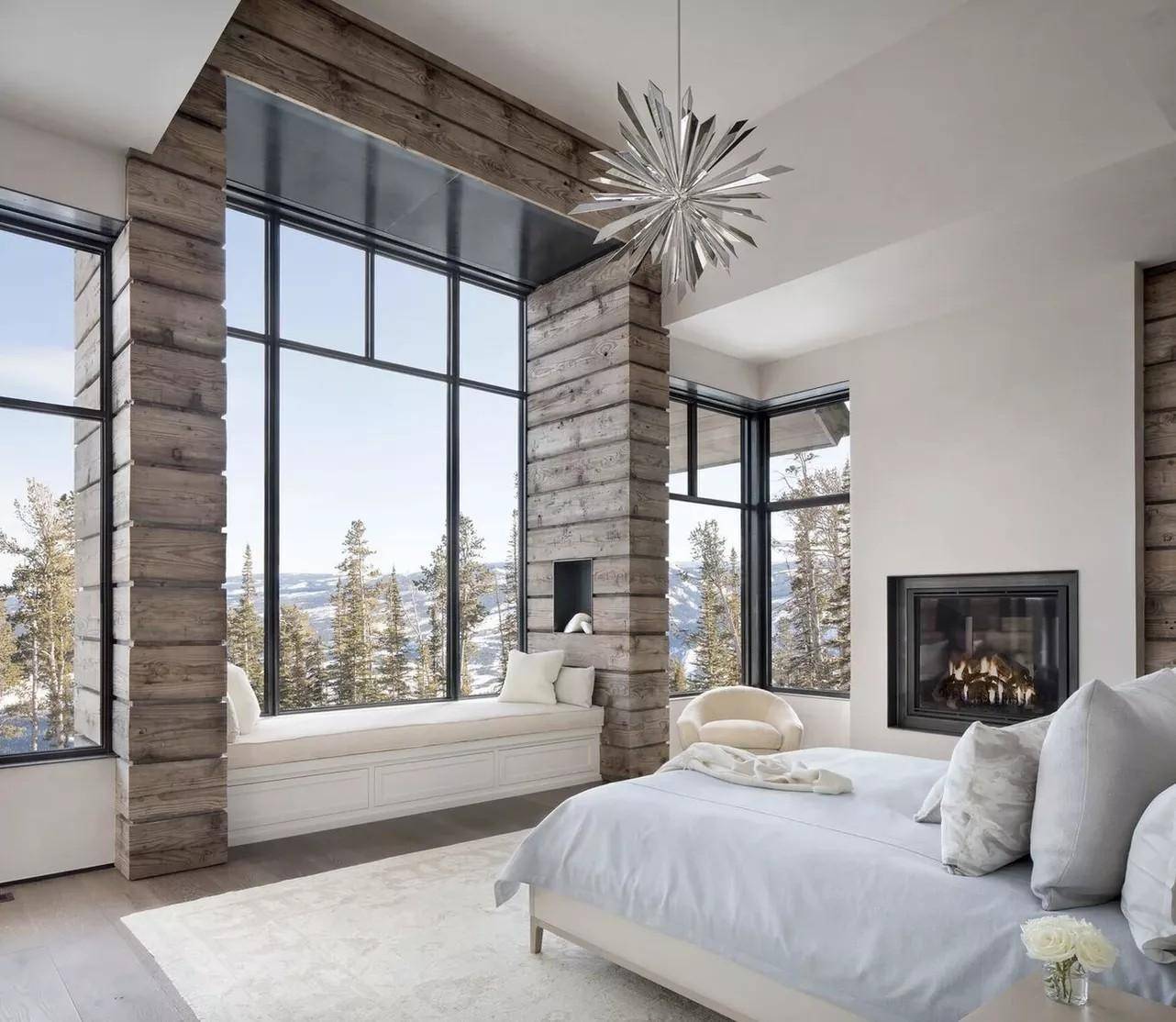 Via:KENDALL WILKINSON 滑雪屋风格是当今最为奢华的装饰风格。只要稍加努力,你就可以在自己的卧室里捕捉到这种奢华。 将质朴的木质装饰与毛绒毯子和枕头搭配起来。如果可以的话,还可以悄悄地放上一个适合冬天的设备,例如壁炉、蜡烛等。 加利福尼亚-酷(California-Cool)