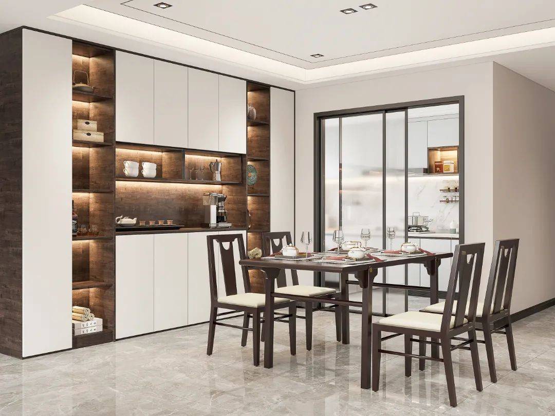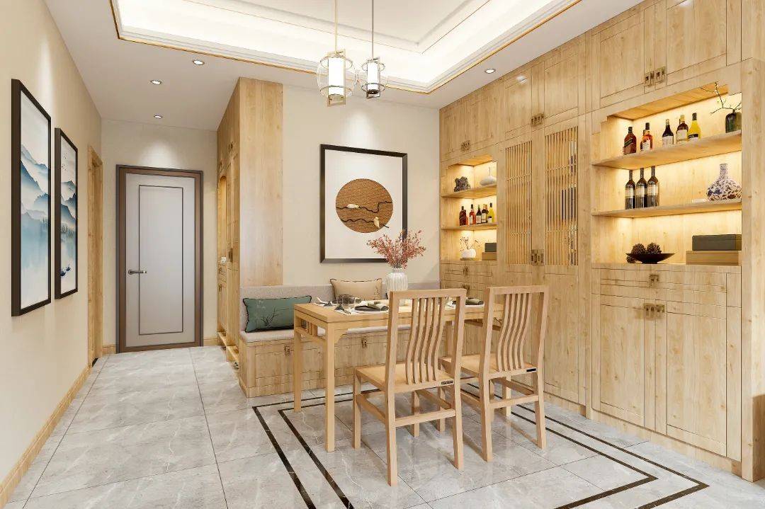 新中式 新中式风近年来也是一个大热风格,在外观设计上,它的选择性也很多,可以是朴素淡雅的浅木色,也可以是深沉浓厚的深木色,更现代一点的还会搭配富有质感的绿色,但无论是什么颜色,它的设计都在能轻松满足日常就餐需求的同时,也给人带来宁静致远的雅致美感。