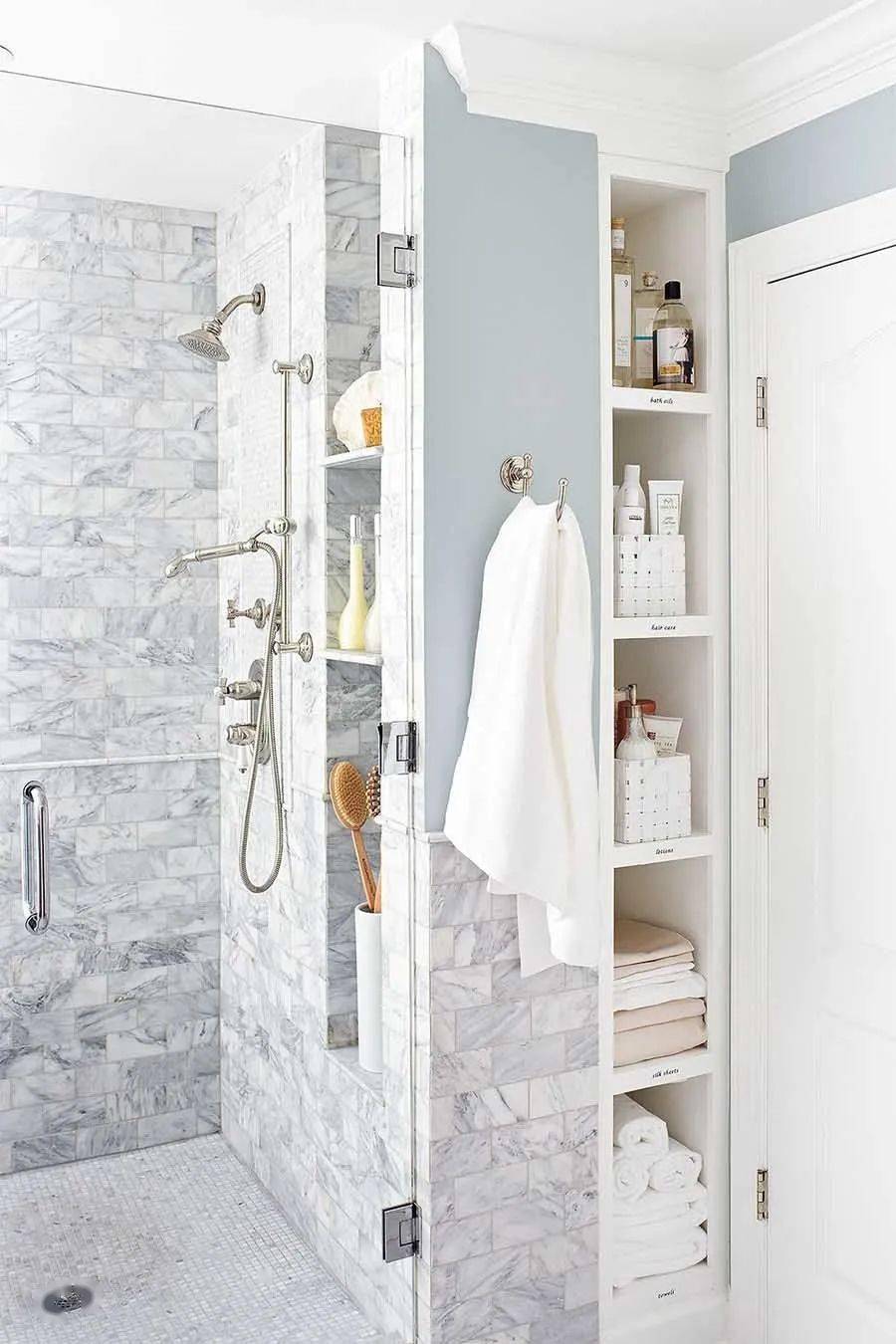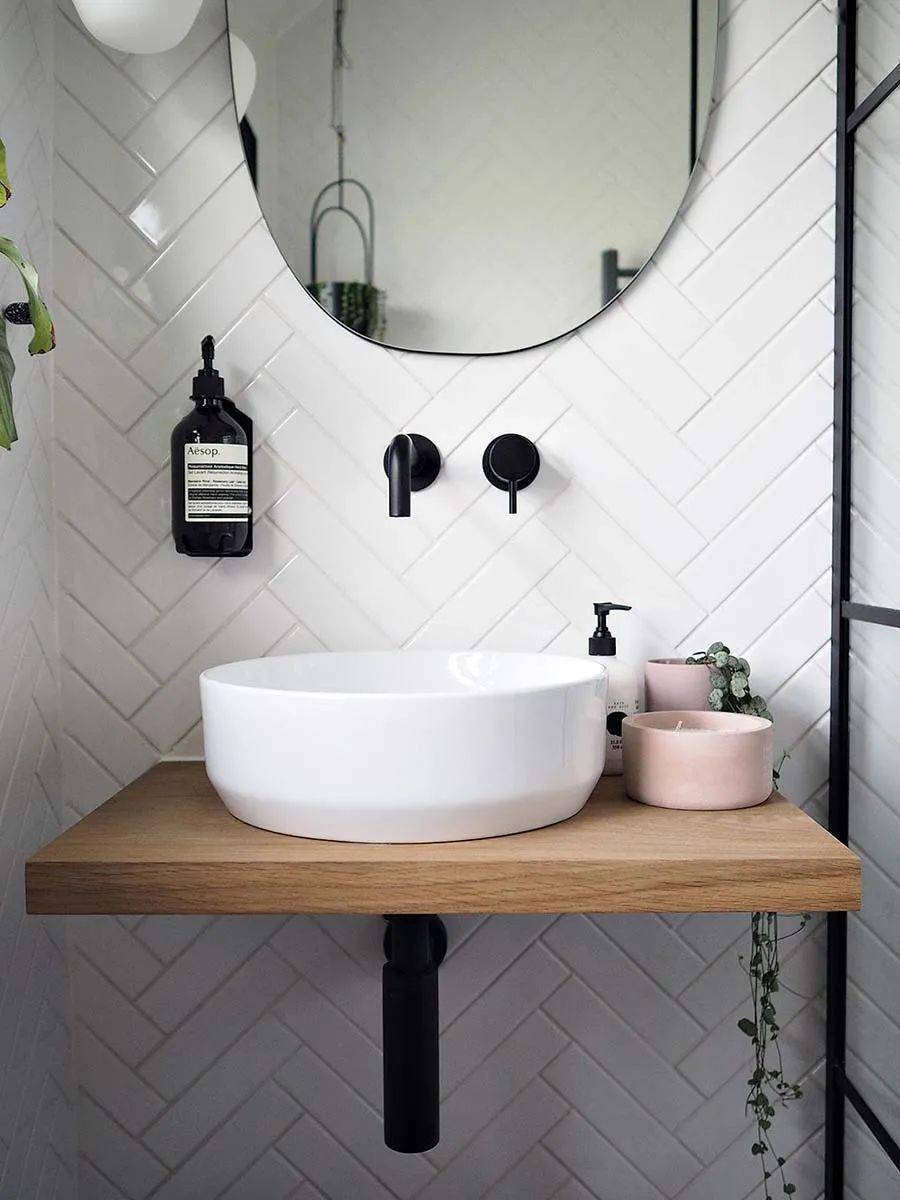 所以,建议空间里维持最少的装饰,以及将洗漱用品放入漂亮罐子、收纳盒,创造整洁及风格一致的氛围。