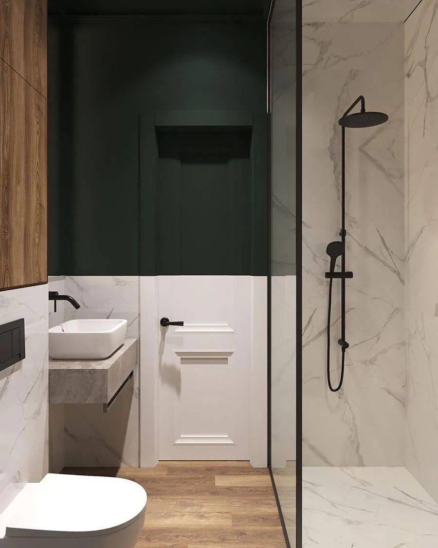 ‍‍建议,使用两种瓷砖来搭配即可(最多不超过3种),比如地板选用方形地砖,墙面则搭配造型简约的小型花砖,让卫生间既有层次变化,也不会过花俏凌乱。