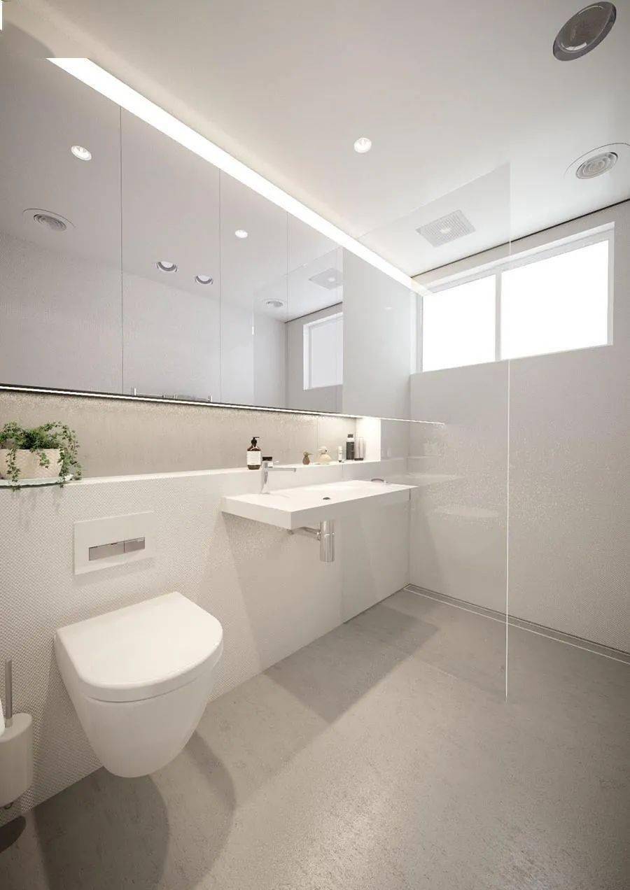 卫生间若有窗户,除能引入自然光、有助空气流通,也能使小浴室看起来更大。但若属于无窗布局,除了原本的吊顶灯光,更建议在浴室镜前加装灯光(镜前灯),才能真正照亮整个卫生间,保持光线充足,进而避免因为幽暗而造成不适感及压迫感。