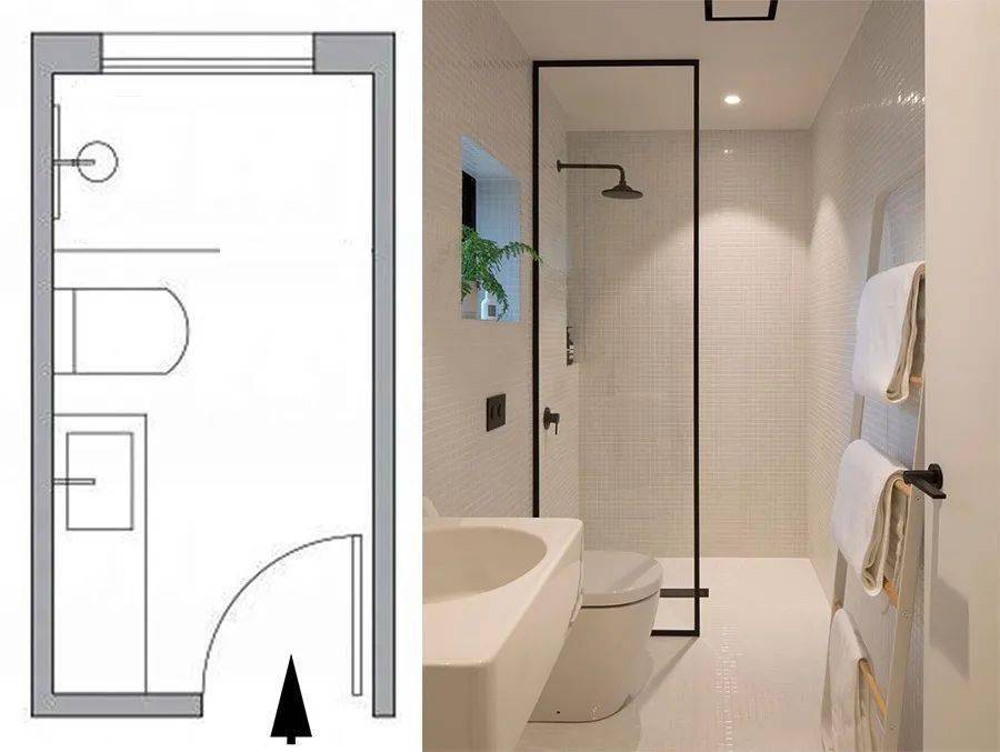 建议,狭长形格局应该将淋浴区(房)放在空间底部,并使用玻璃隔断,让视线得以穿透。其次,如果是方形布局,建议将功能区往两边设置,比如一边规划淋浴房,另一边规划为浴缸(或马桶区),避免所有卫浴功能都挤在同一边。