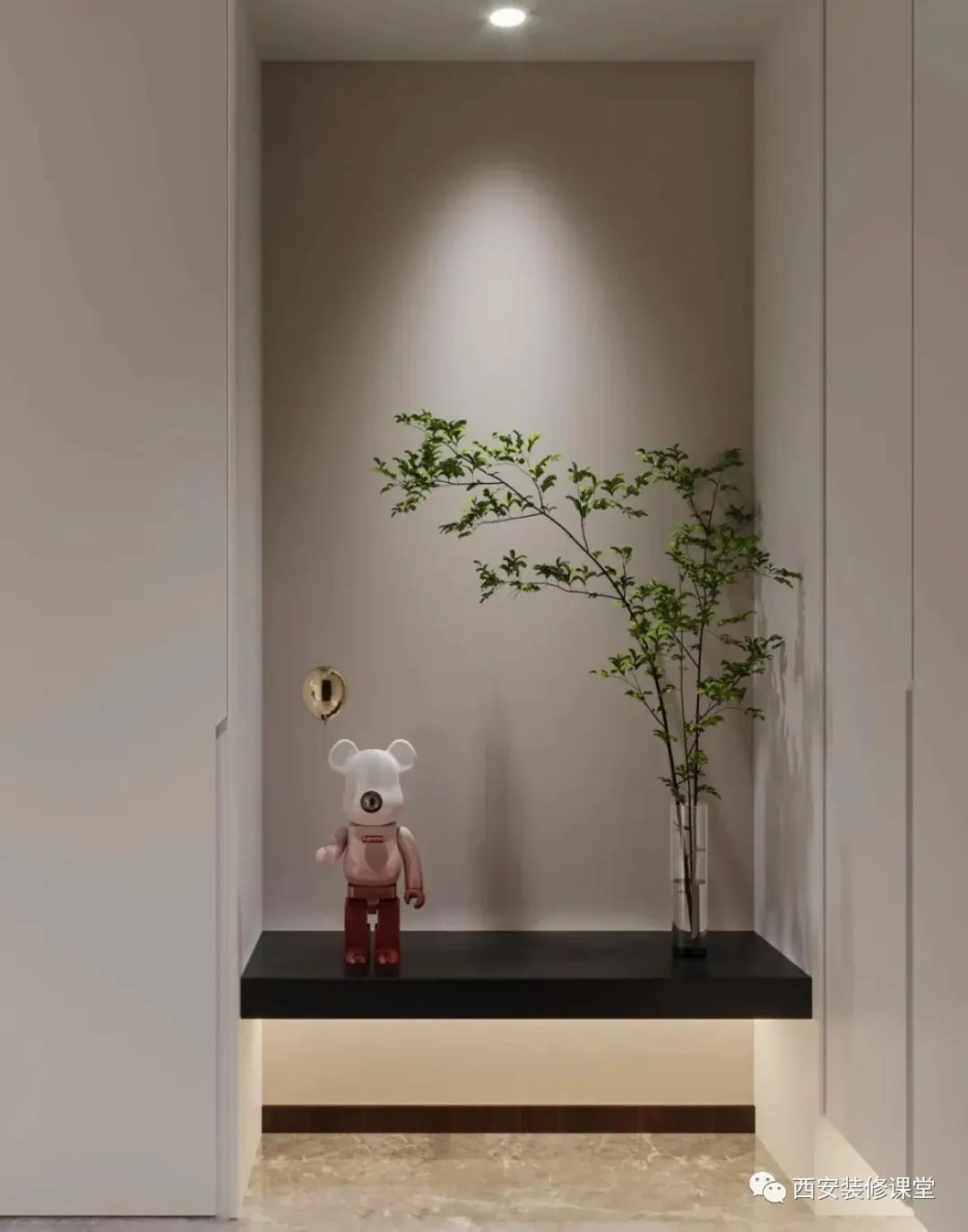 入门除了美观实用的玄关以外,正对面做个端景台,更是妥妥的加分了! 16