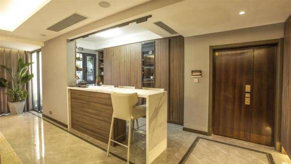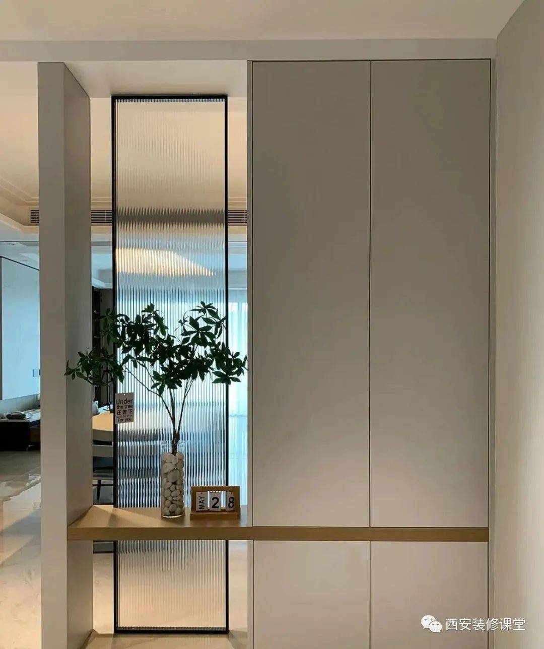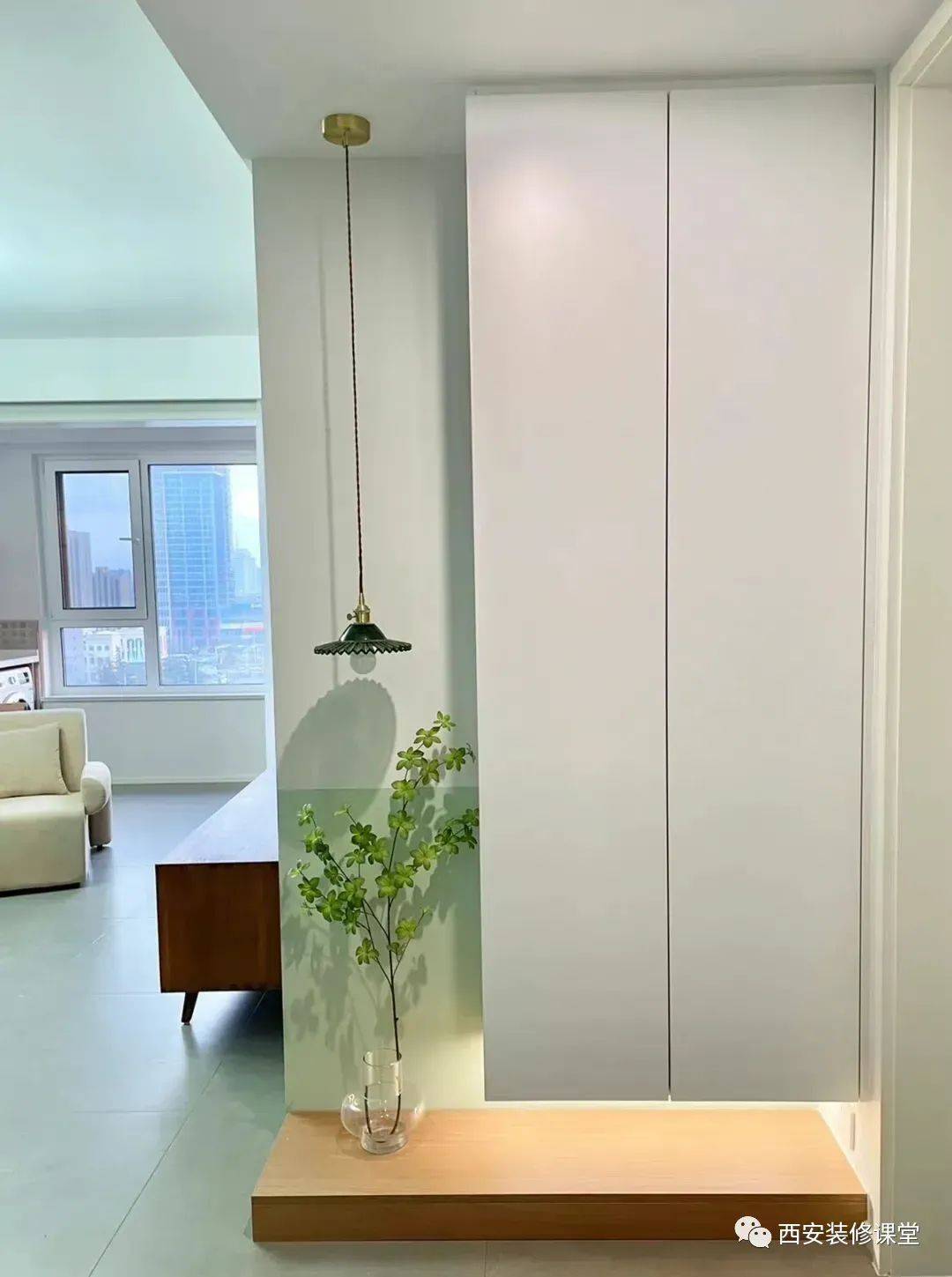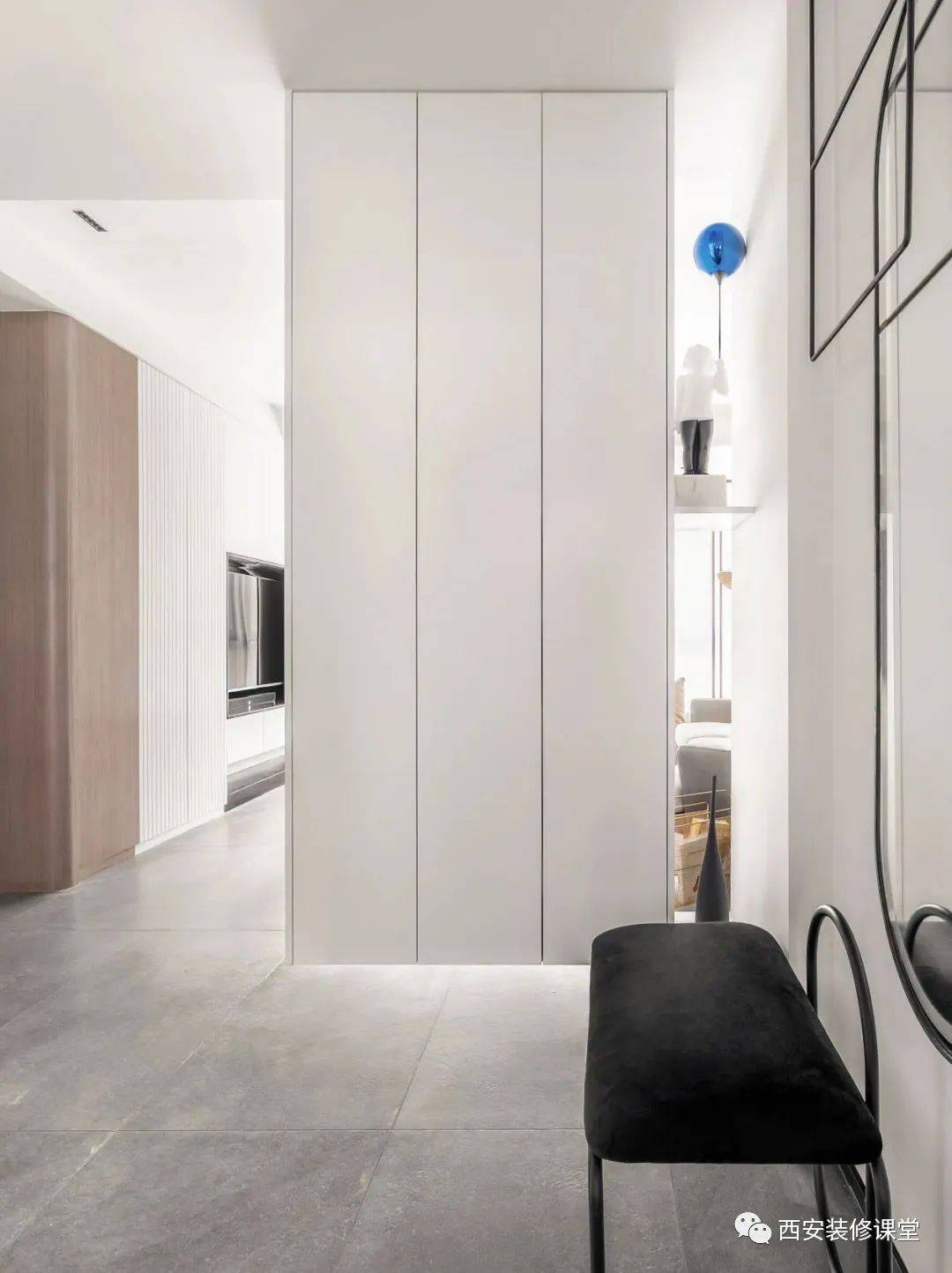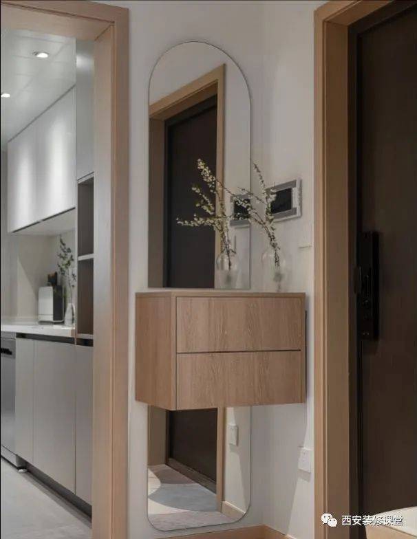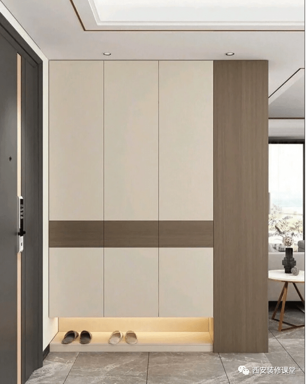 玄关柜的门把手设计成隐藏式的,让整个玄关给看起来格外整洁美观。 10