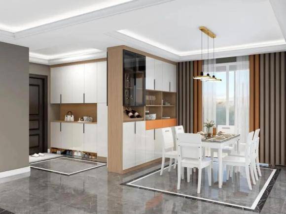 如果对空间收纳有极大需求的话,将储物柜从玄关一直延伸至客厅也是不错的哦,大大提升了空间收纳力。 17