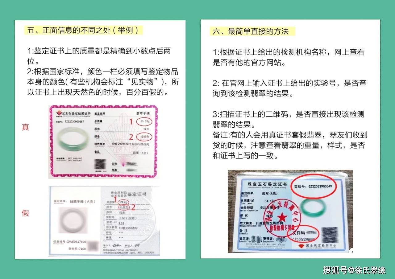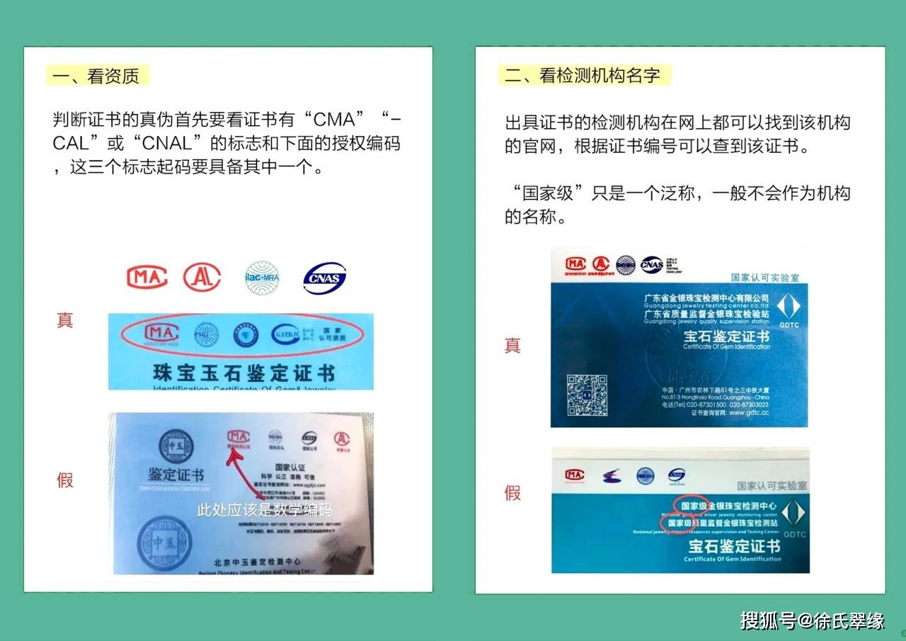 8.看证书 权威机构出具的鉴定证书,是最简单直接的辨别途径,但证书也有造假,要注意再注意。证书辨真假的详情细节,请参照下图☟