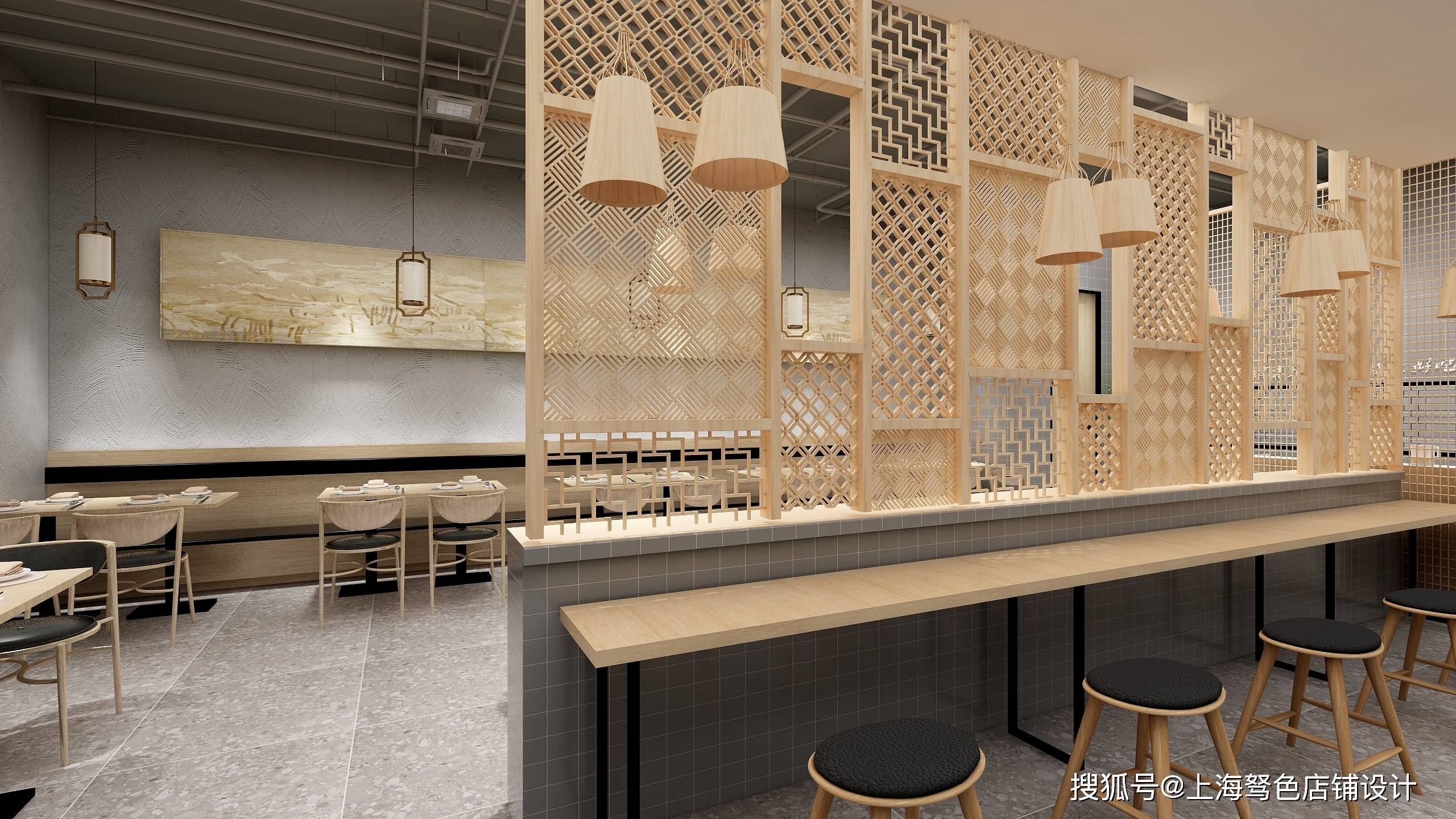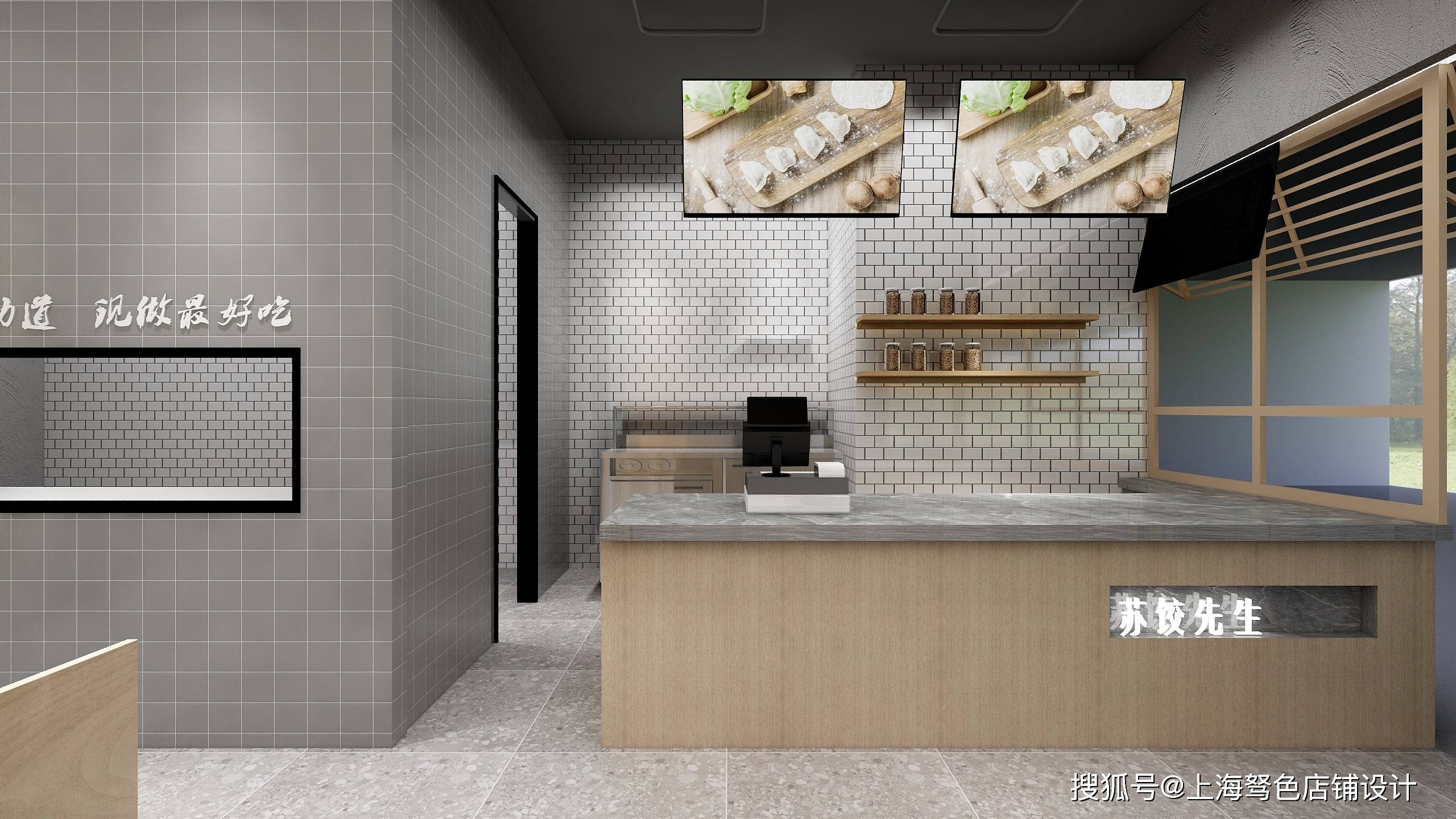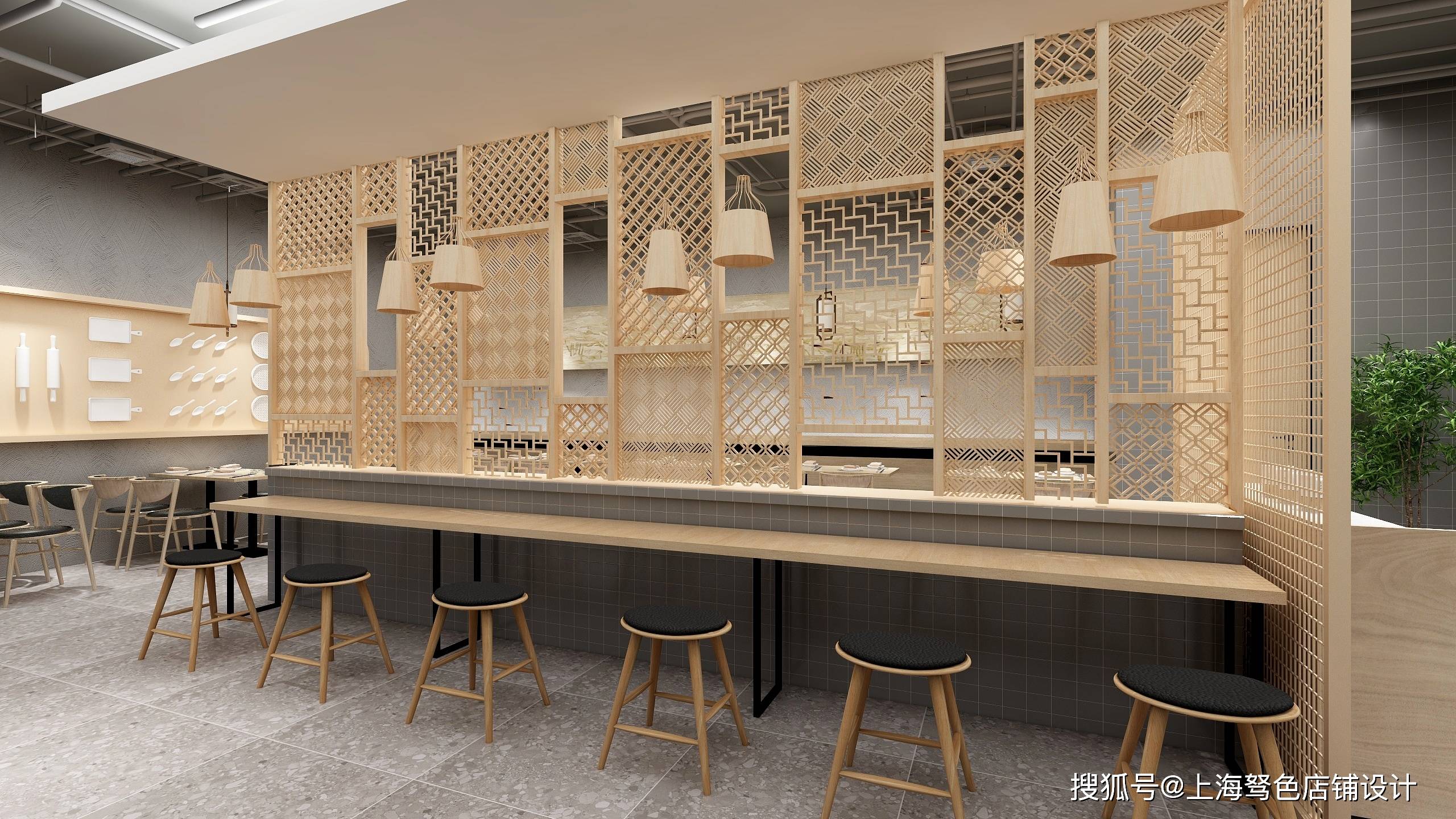 造型背景射灯配简易化烘托氛围,货架展柜依次排开,摆放商品简单大气,餐桌使用原木镂空设计隔开突出氛围,打造网红拍摄区,吸引顾客打卡进店。这样设计店面,每天轻松10万业绩。想要更多餐饮店面设计,记得点赞加关注哦。