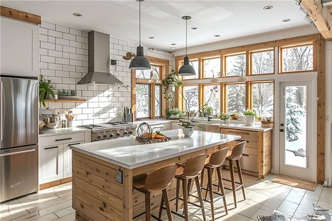 ④原木风 自然、温馨和舒适 大量使用未经过多加工的原木 没有过多的装饰和复杂的线条 搭配白色、米色等柔和的木材的自然色 空间显得更为和谐