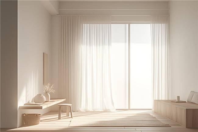 金色的阳光斜照居室 与原木色的家具、地板,奶白色的墙壁、落地窗帘 一同唤醒了清晨的那抹睡意 简约的花瓶与插花、木凳 仿佛也笑意盈盈、舒展身姿 迎接即将到来的工作与生活