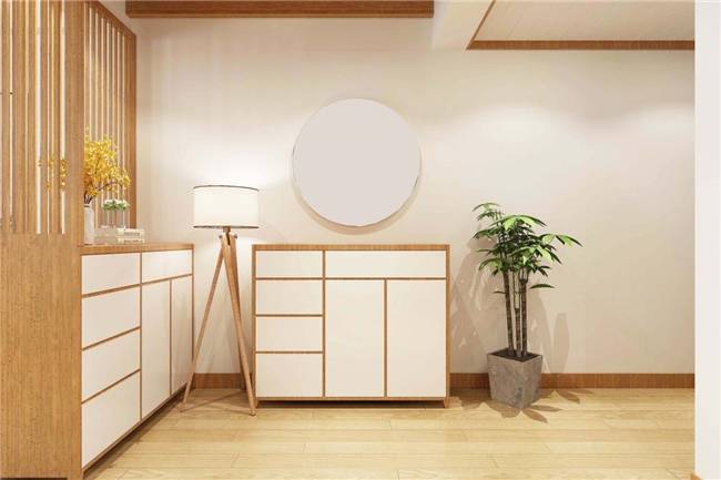横向的壁柜、竖侧的玄关隔断 将原木风诠释得淋漓尽致 夹角里的实木三角落地灯 充分利用了角落空间 圆形的挂件与原木地板烘托出 “户庭无尘染,虚室有余闲” 绿植、桂花点缀雅斋 真是“绿竹含新粉,桂花落故衣。”