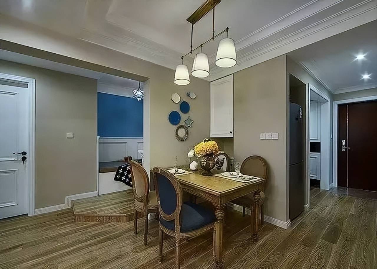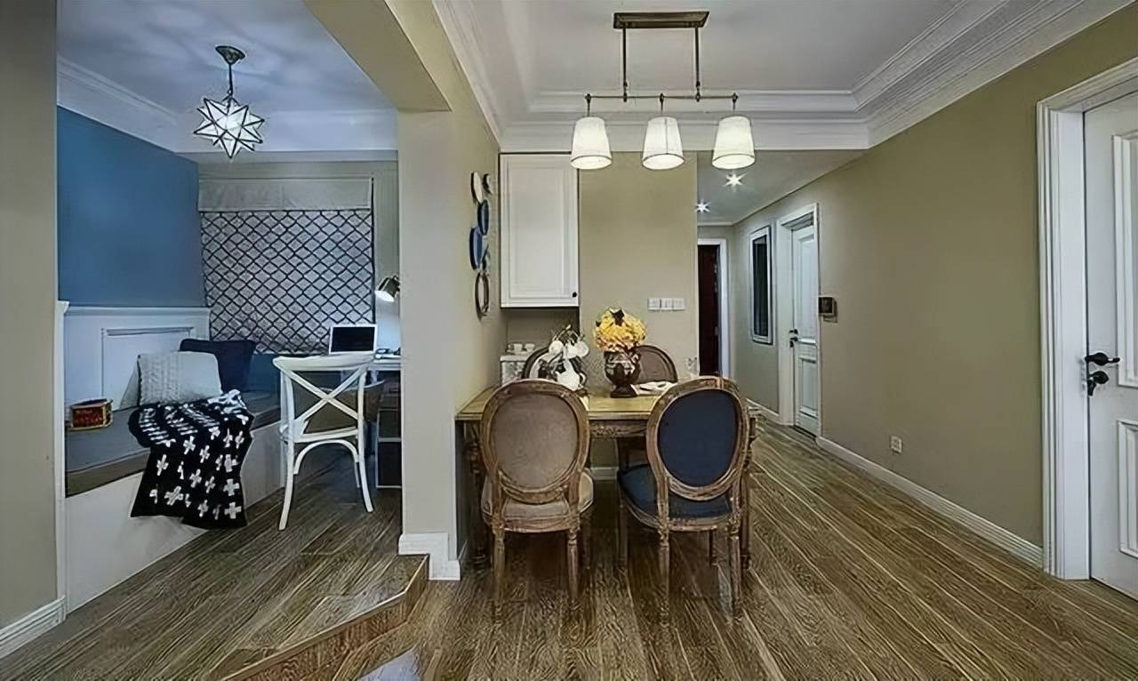 餐厅书房装修设计,墙面色彩深得我心,全屋木地板铺设,温馨雅致,尽显品味。