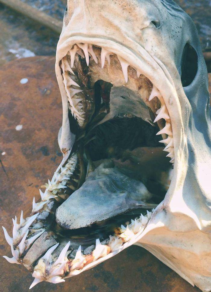 15. 这只河豚鱼被太阳晒干后,皮肤向后拉,露出更多的牙齿。它们实际上是无害的,以珊瑚为食,因此长有锋利的牙齿。