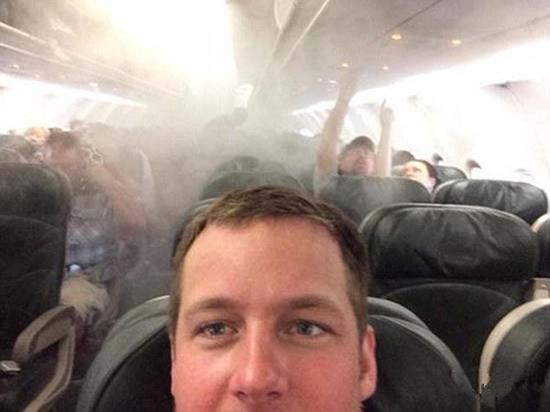 飞机出现意外状况男子镇定自拍