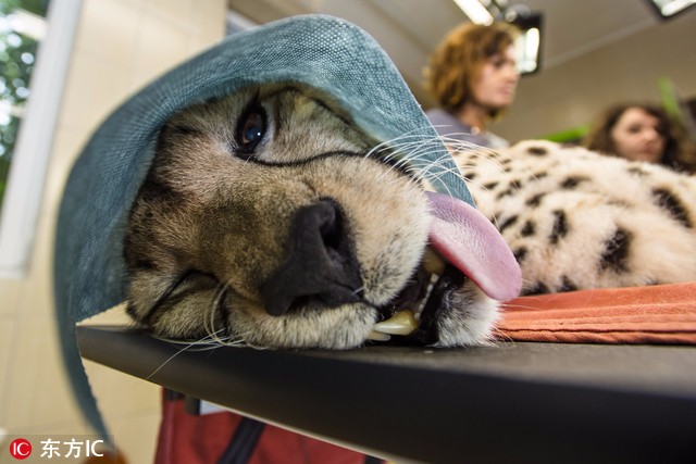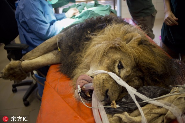 一只非洲狮在耶路撒冷接受CT检查。现在这只大猫已经暂时失去了知觉。